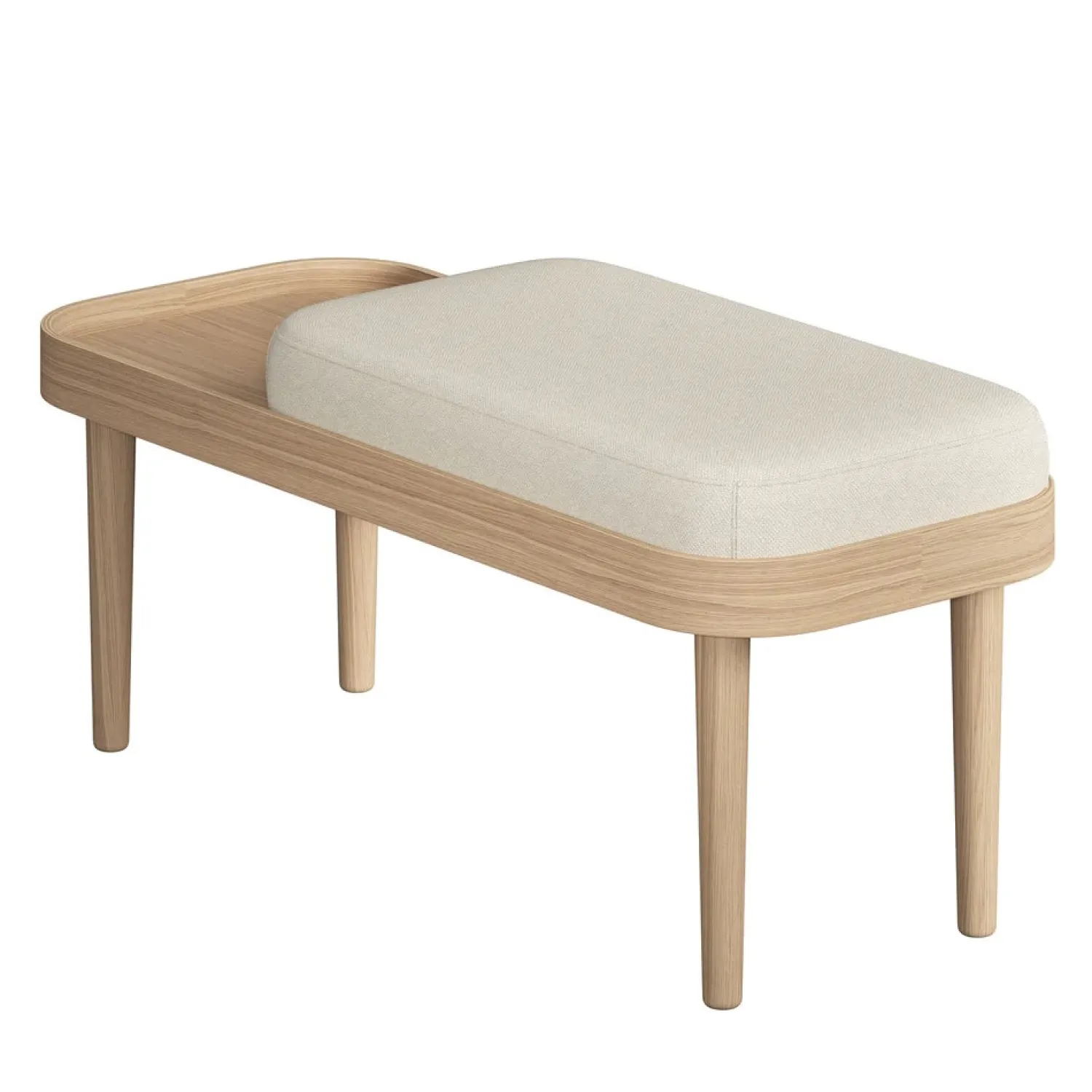 SERENA bænken fra NovoForm kombinerer elegant fineret natur egetræ og massive egetræsben, der fremviser den naturlige skønhed i materialet. Den omhyggeligt formbøjede trækonstruktion præsenterer en tidløs æstetik, der udstråler varme og inviterende komfort. Træets åremønstre og varme nuancer tilføjer et strejf af naturlig charme til dine omgivelser, skaber en indbydende atmosfære og bringer hygge til ethvert rum. Bænken har karakteristiske afrundede former på hele møblet, hvilket giver en fin varm og blød atmosfære. Især anvendelig i entréen, hvor du kan bruge den som siddeplads samtidig med, at der er plads til at placere et par sko ved siden af puden.