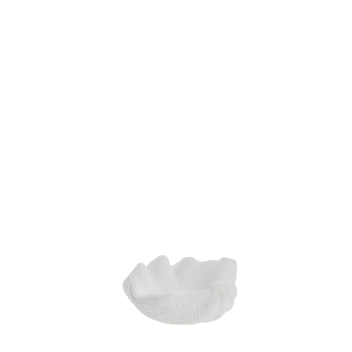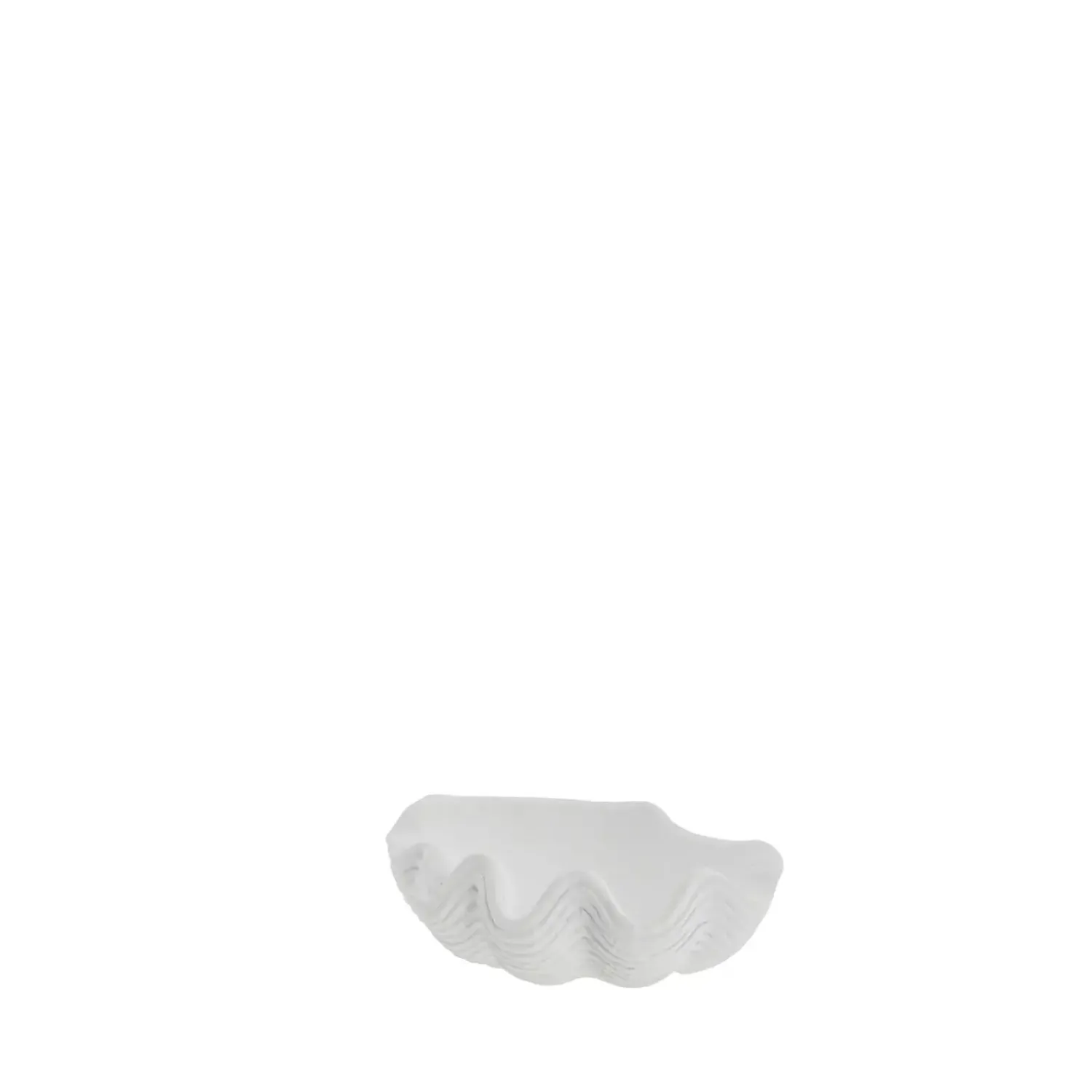 Elegant Shella dekorationskål formet som en muslingeskal og lavet af hvid polyresin.