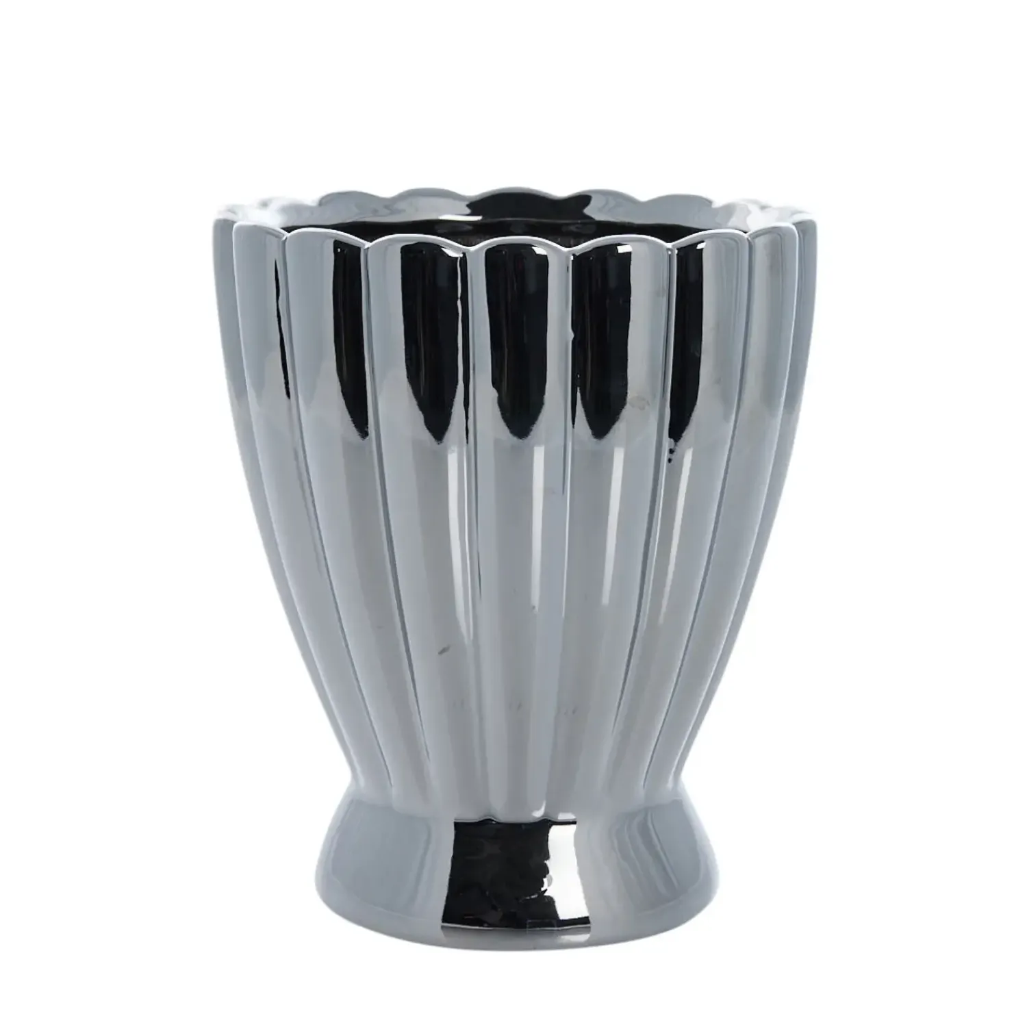 Lene Bjerre – Shenella urtepotteskjuler i sølv er et stilfuldt tilbehør til dit hjem. Med sin blanke overflade og sofistikerede design kan den anvendes til at fremhæve planter både indendørs og udendørs.