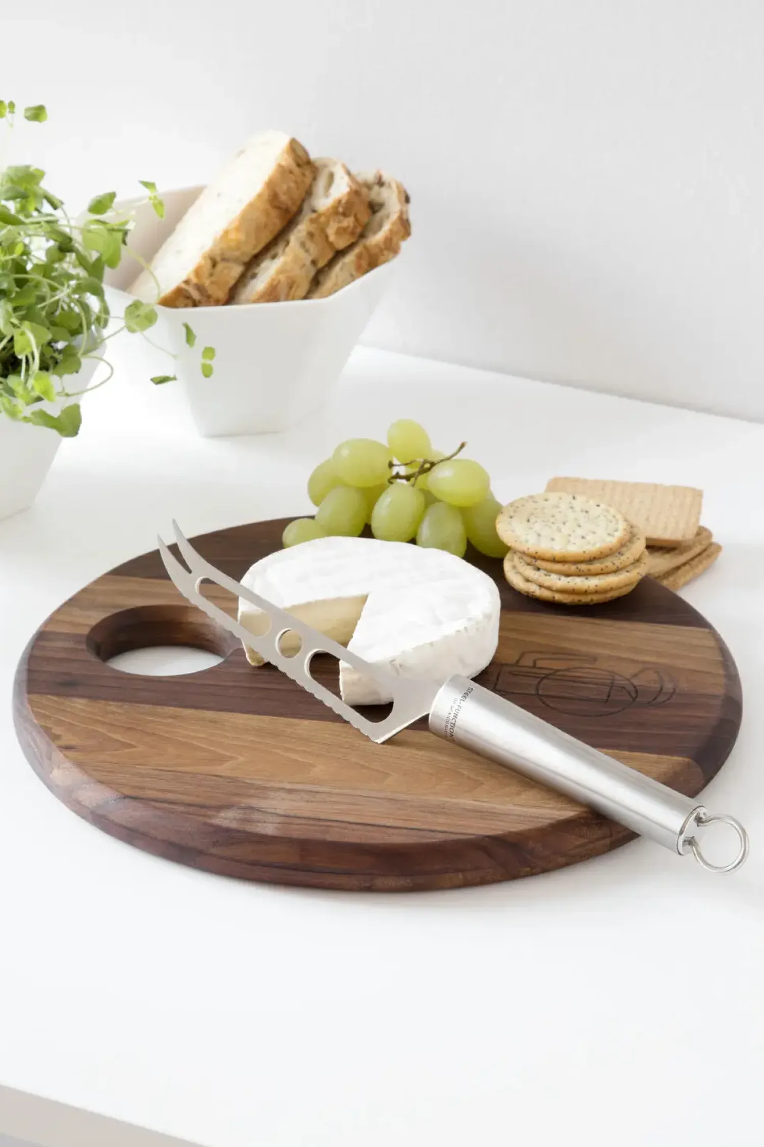 Dette runde skærebræt i valnøddetræ kombinerer naturlige åretegninger med praktisk anvendelighed. Med en diameter på 28 centimeter får du god plads til både tilberedning og servering af dine retter.