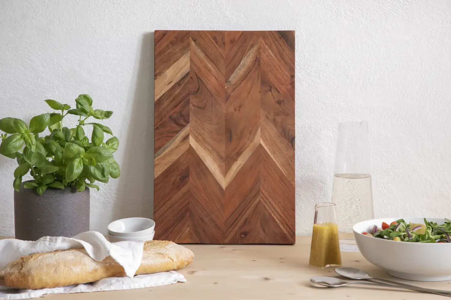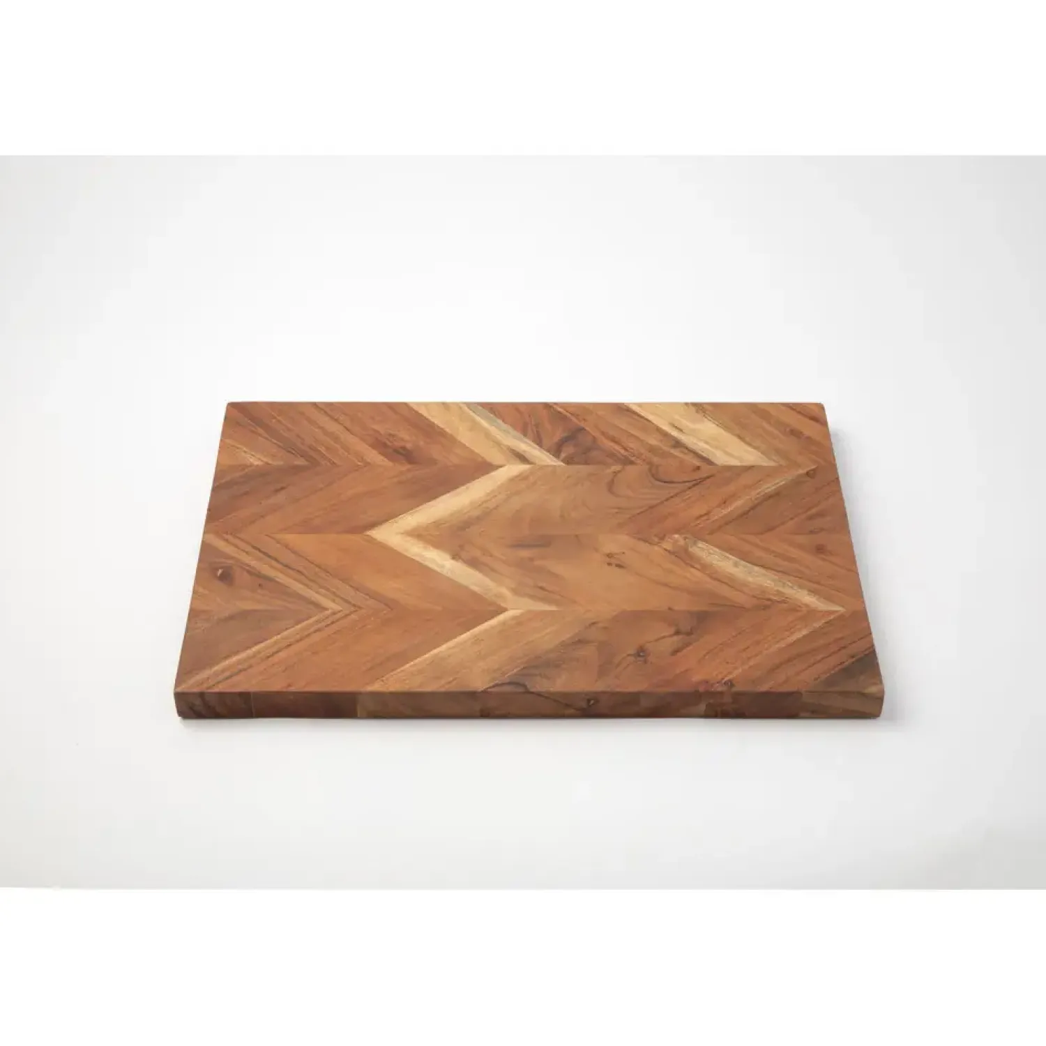 Dette skærebræt i hårdt akacietræ kombinerer holdbarhed med funktionalitet. Sildebensmønsteret giver et særligt udtryk til dit køkken, mens materialets egenskaber skåner dine knive og sikrer en lang levetid.
