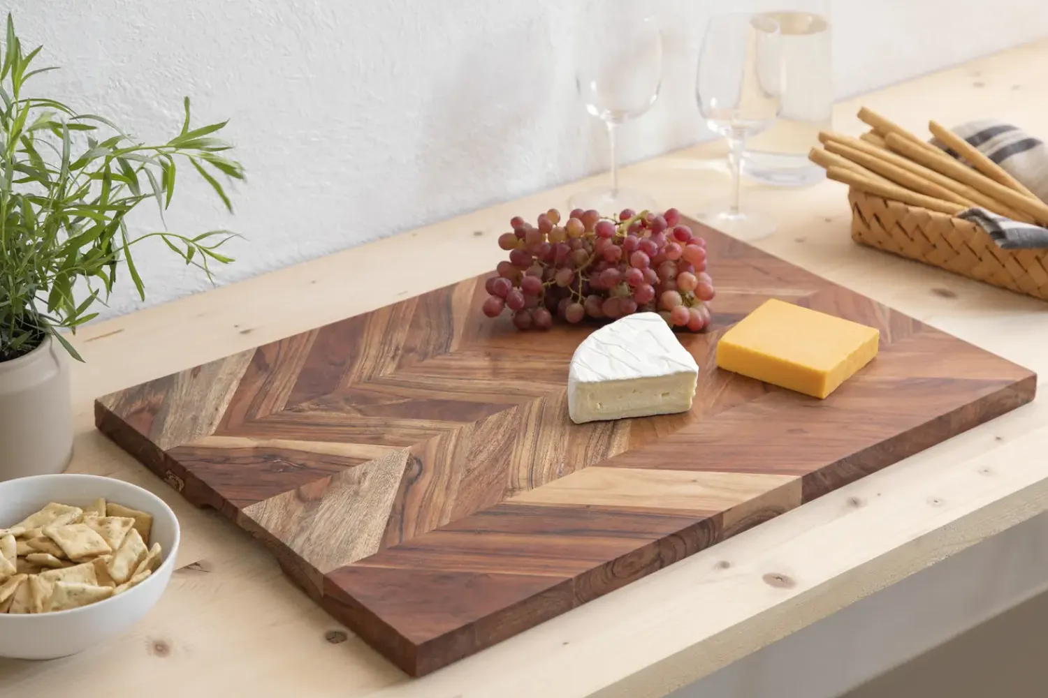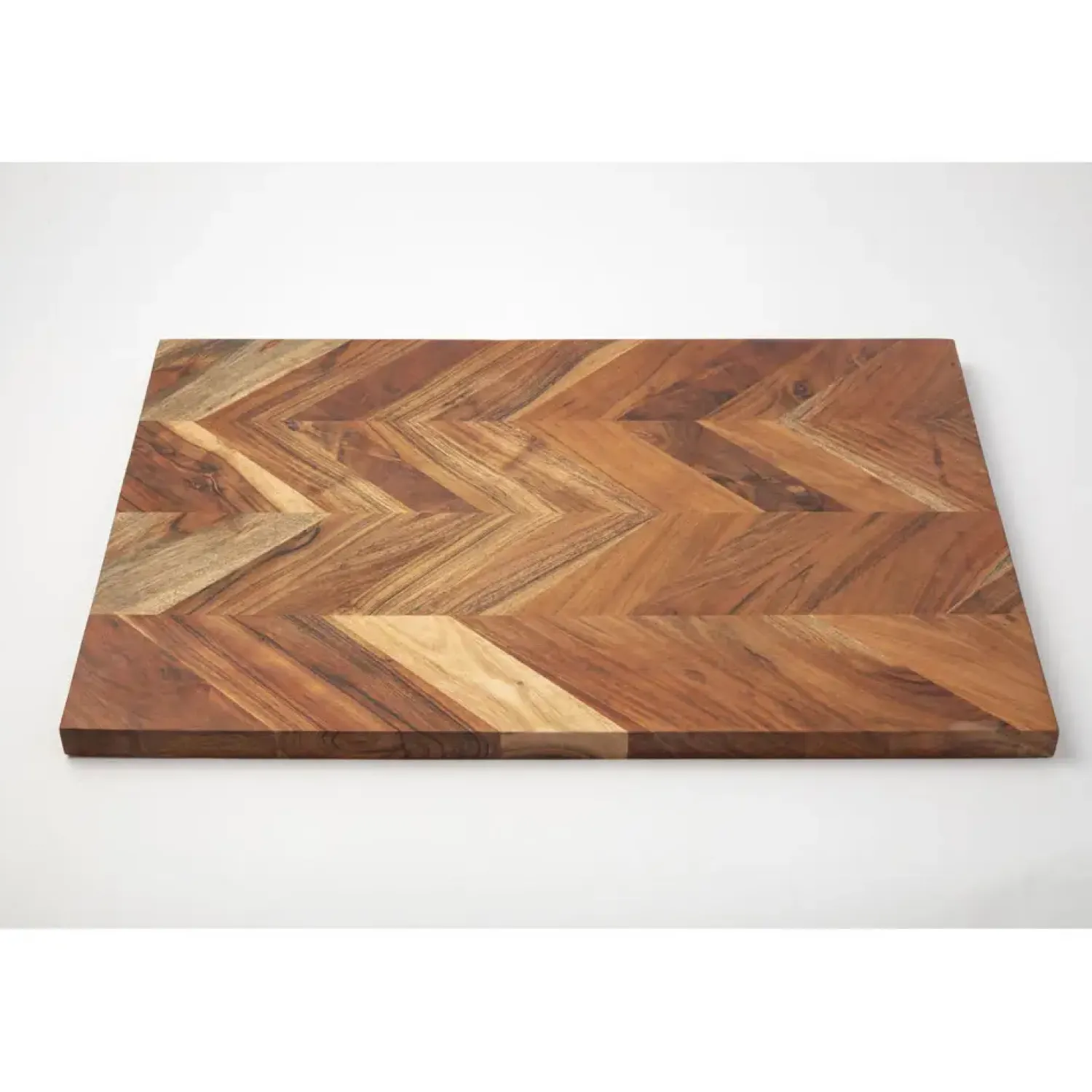 Dette skærebræt i akacietræ kombinerer funktionalitet med et karakteristisk sildebensmønster. Med sine 60 x 40 cm giver det god plads til både madlavning og anretning. Akacietræets naturlige antibakterielle egenskaber sikrer en hygiejnisk madlavningsoverflade.
