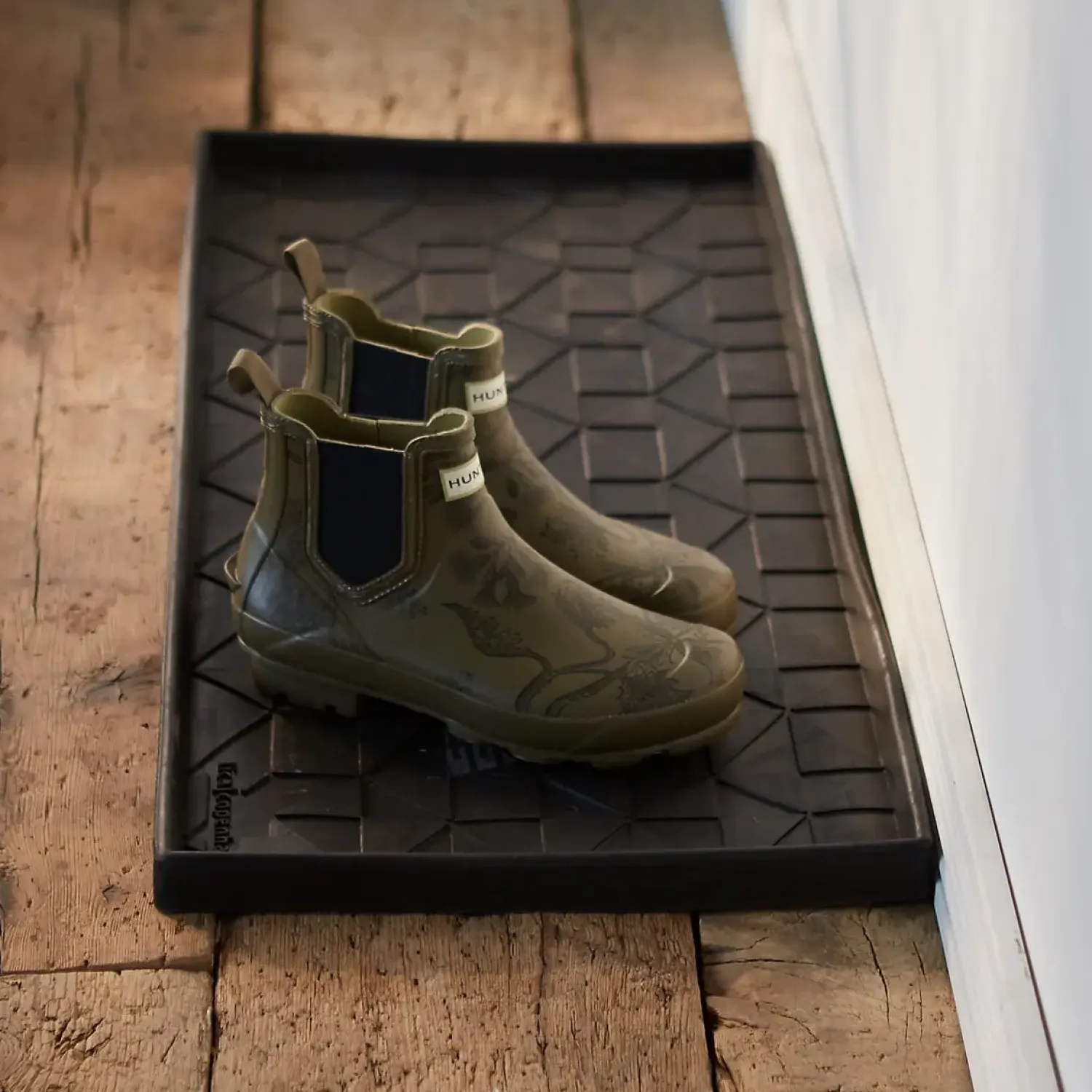 Det specielle ved tica copenhagen’s skobakker er, at de er støbt i 60% genbrugsgummi, hvilket giver en god tyngde. De rutcher ikke rundt og vipper ikke som lette plastskobakker, men er derimod robuste og holdbare. Kanterne tåler at man træder på dem og knækker ikke som plastskobakker kan.