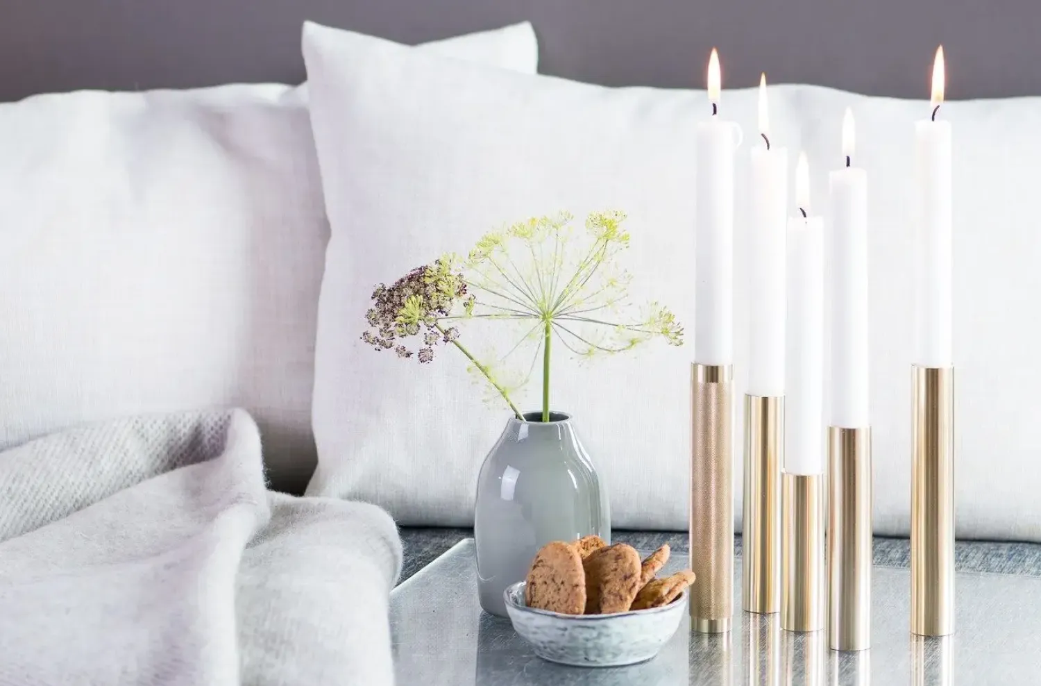 Hvis du leder efter en lysestage, der holder i mange år, er massiv messing et materiale med lang levetid. Messing udvikler en naturlig patina over tid, men kan også poleres tilbage til sin oprindelige glans. Lysestagen er nem at rengøre – blot tør voksdråberne af med en klud.