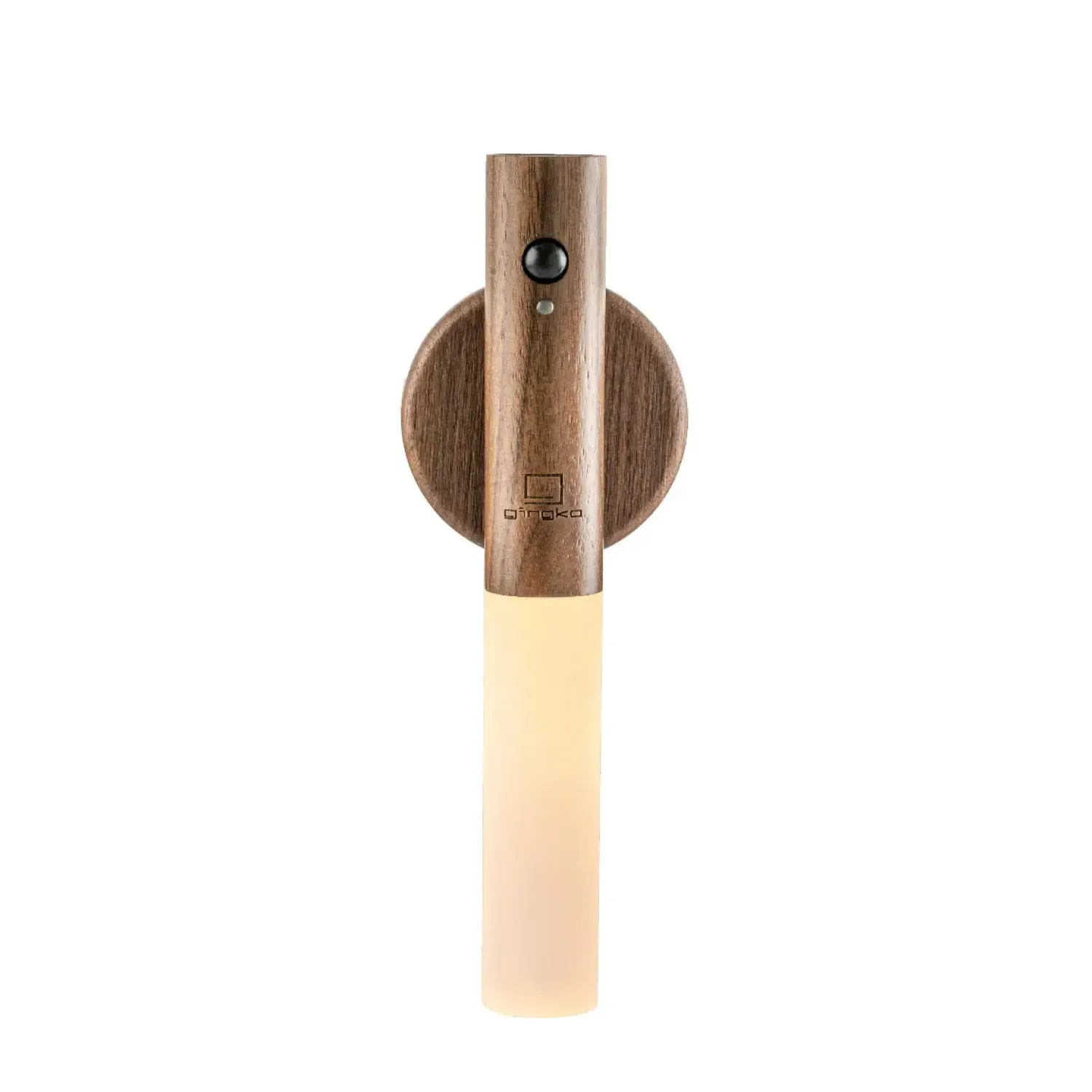 Smart Baton Light kombinerer trådløs funktionalitet med naturlige materialer. Lampen kan placeres hvor som helst i hjemmet uden ledninger, hvilket giver dig frihed til at flytte den efter behov. Staven er lavet af mat akrylglas, mens toppen og den magnetiske bund er fremstillet af ægte valnøddetræ.