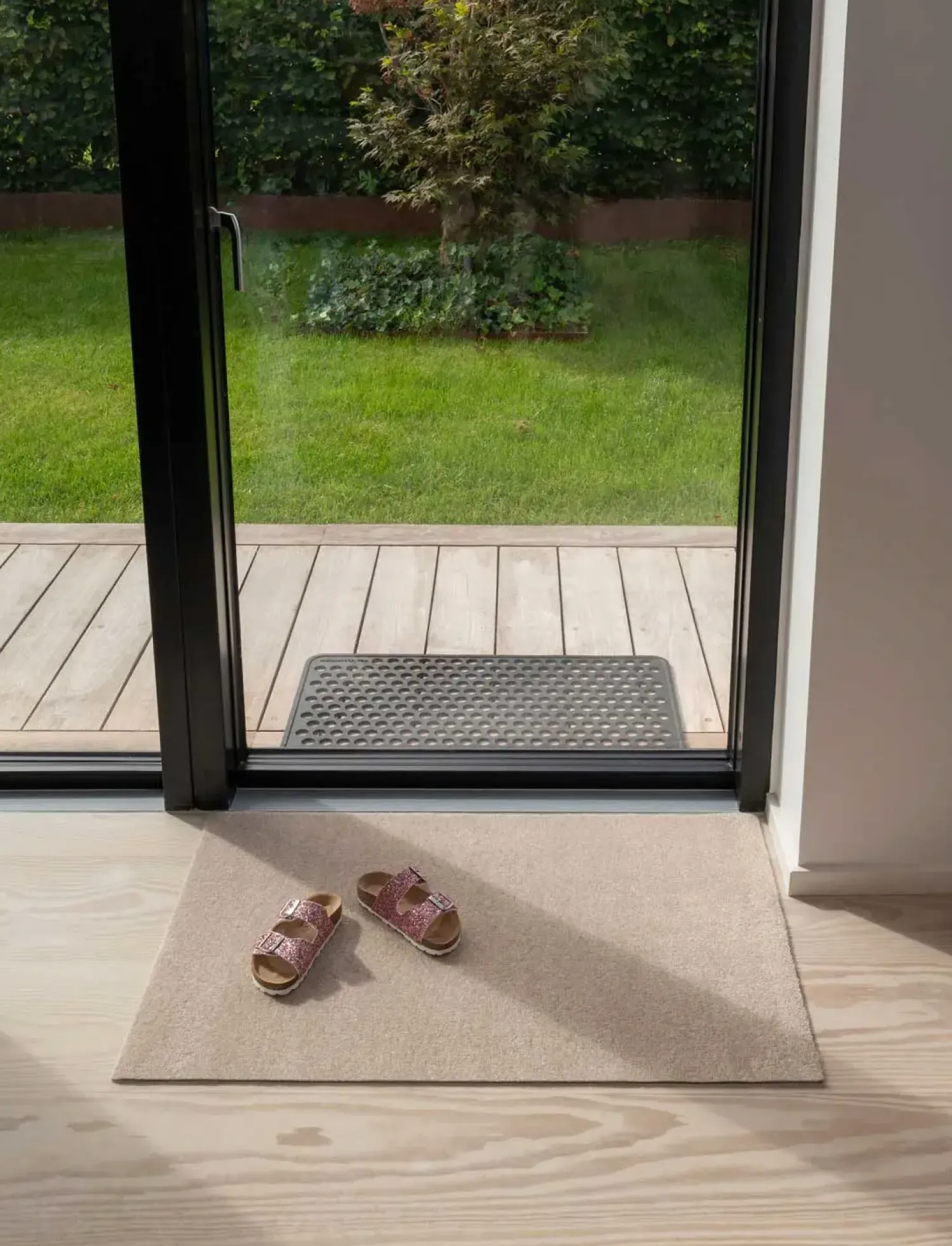 Bagsiden er en phthalatfri vinyl/PVC som medvirker til at måtterne altid ligger stabile på gulvet uden af rutsje rundt. Måtterne rengøres nemt ved støvsugning, skylning/spuling eller maskinvask ved max 30 grader. Den er meget holdbar og let at rengøre.