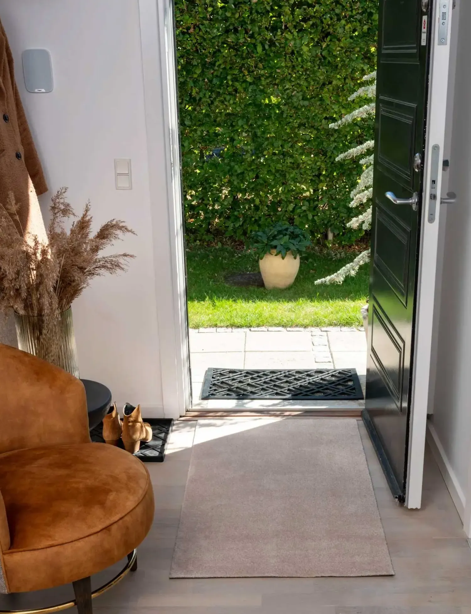 Bagsiden er en phthalatfri vinyl/PVC som medvirker til at måtterne altid ligger stabile på gulvet uden af rutsje rundt. Måtterne rengøres nemt ved støvsugning, skylning/spuling eller maskinvask ved max 30 grader. Den er meget holdbar og let at rengøre.
