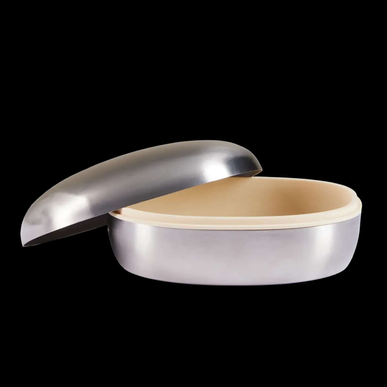 Dette smykkeskrin er formet som Piet Heins ikoniske superellipse og kombinerer tidløst design med praktisk funktion. Det blanke eller børstede stål giver et stilrent og sofistikeret udtryk, mens det bløde indlæg beskytter dine smykker.