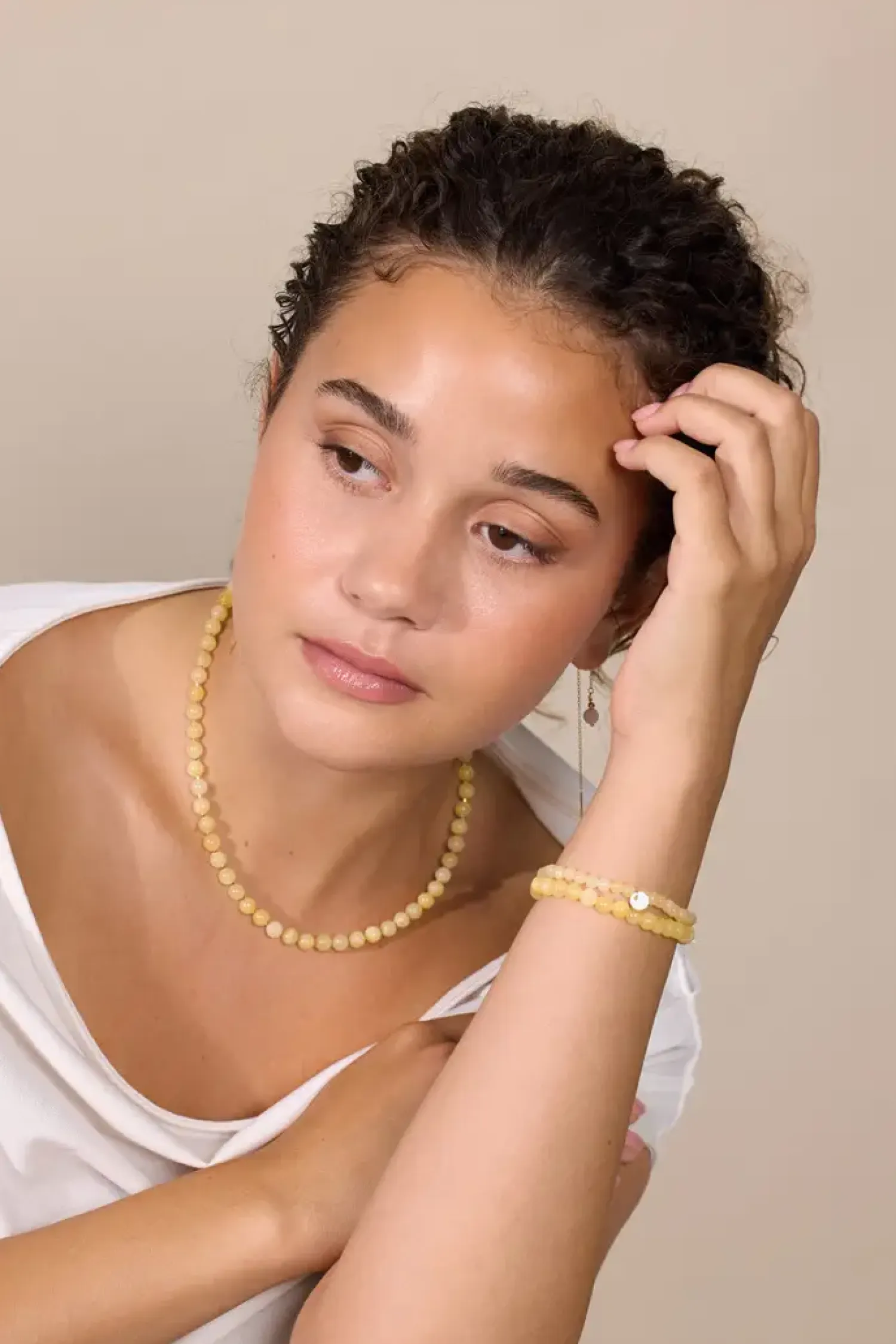 Gul Jade krystal armbåndet er skabt med det formål at hjælpe dig med at finde mere glæde, velvære og fred. Gul jade siges at tiltrække lykke, velstand, øget selvtillid og indre balance.