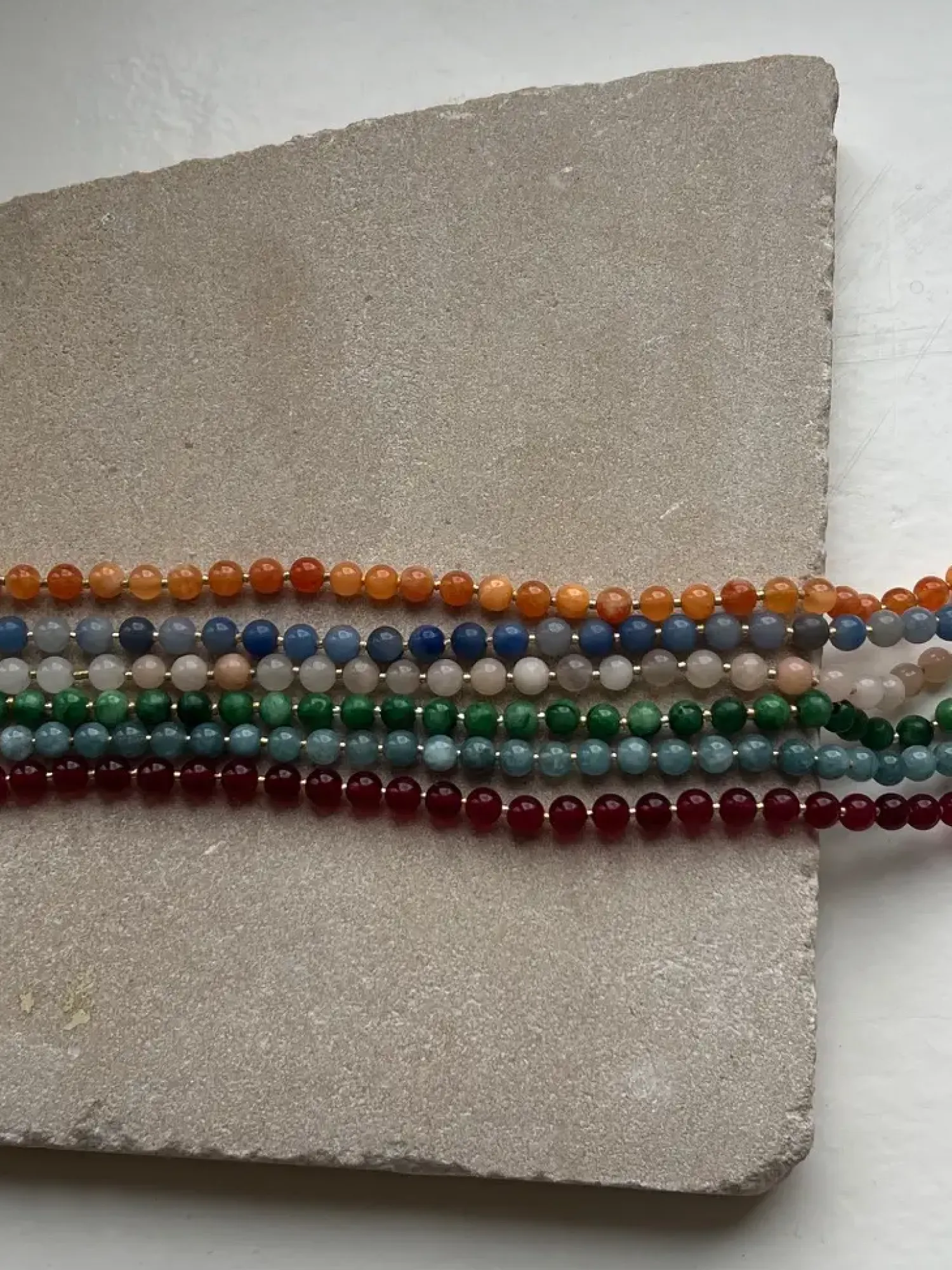 Orange Aventurin krystal halskæden er designet til at fremme kreativitet, glæde og held. Det siges, at orange aventurin tiltrækker lykke, styrker selvtilliden og motiverer dig til at nå dine mål.