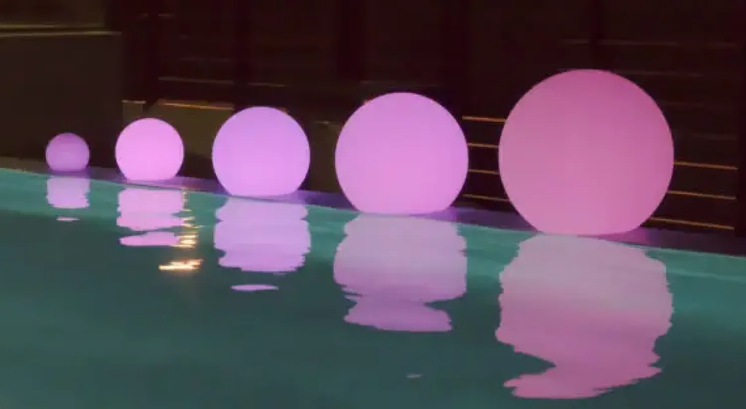 Denne kugleformede solcellelampe med en diameter på 30 cm giver belysning på terrassen. Lampen skifter mellem pink og grøn/turkis farver og oplyser haven, når det bliver mørkt.