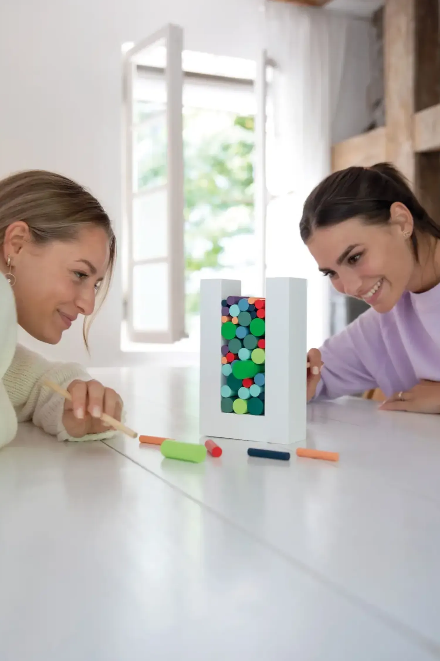 Med Woodman skal du bruge din koncentration og dygtighed til at fjerne træcylindre fra rammen én efter én. Pas på! Ét forkert træk, og det hele kan vælte. Spillepindene har en højde på 5,5 cm og en diameter på 10-25 mm, designet til præcise manøvrer. Spillets regler er simple: Skift til at fjerne én cylinder ad gangen. Hvis du får cylindrene til at vakle eller falde, er det næste spillers tur. Spillet fortsætter, indtil alle cylindre er fjernet, eller indtil en spiller får konstruktionen til at kollapse.