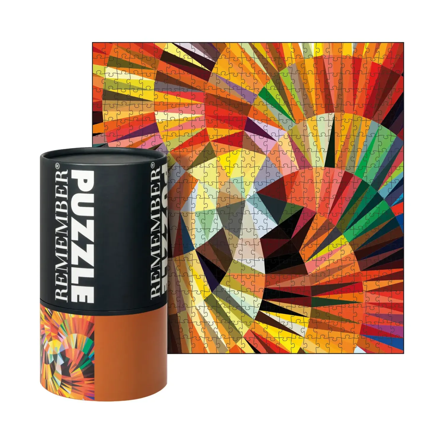 REMEMBER®’s Puzzle Twist tilbyder en unik puslespilserfaring for dem, der søger mere end traditionelle motiver. Dette puslespil præsenterer et farverigt geometrisk design med cirkulære og radiale mønstre, der udfordrer både øje og hjerne. Puslespillet leveres i en cylindrisk æske, der perfekt komplementerer og afspejler det farverige design af puslespillet.