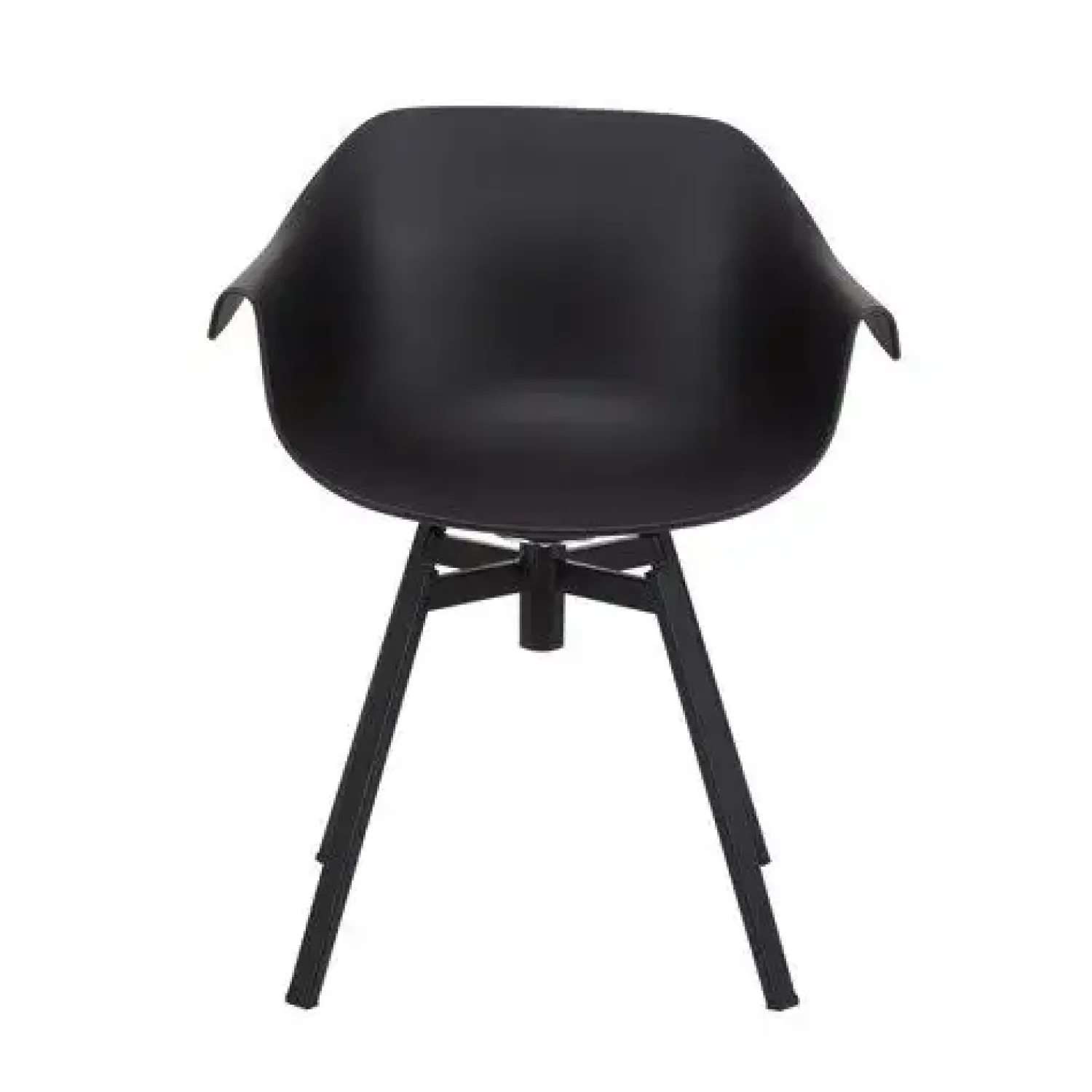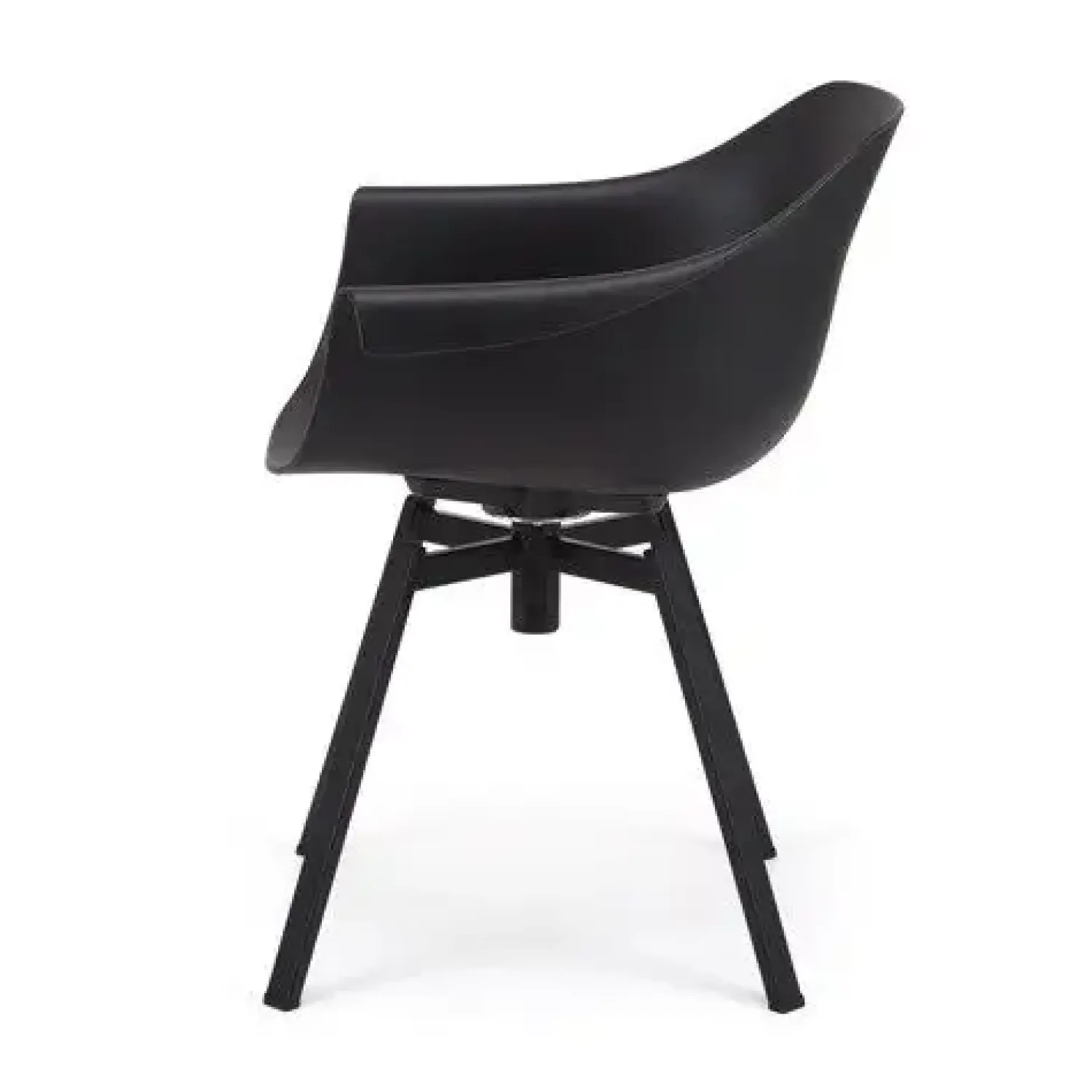 MUUBS – Spisebordsstol – Swiwel – Sorte ben og sort sæde er en funktionel tilføjelse til spisestuen. Denne stol har en drejefunktion og integrerede armlæn, der giver mulighed for bevægelse og støtte under måltidet.