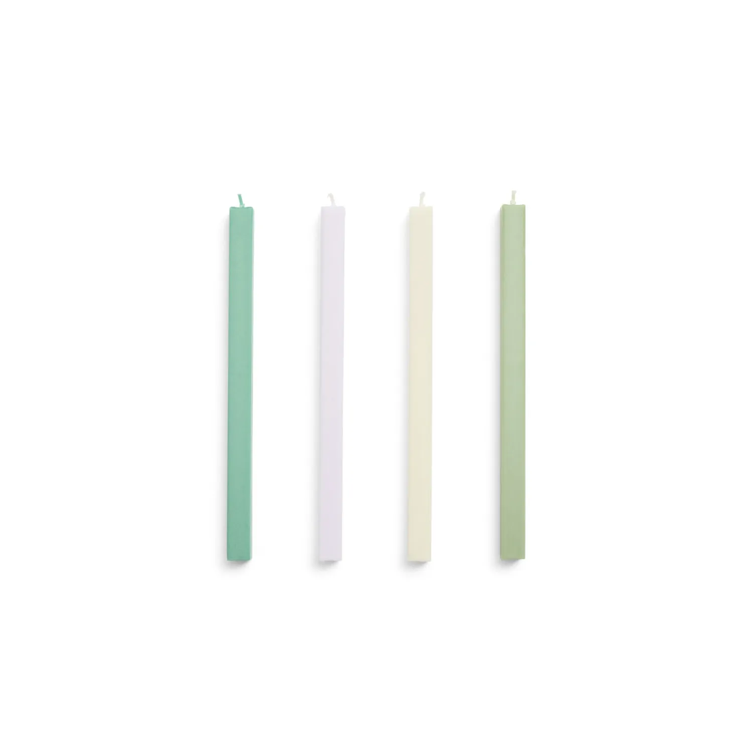 Dette sæt af fire firkantede stearinlys fra Hay er Svanemærket-certificeret. Den matte finish og pastelfarverne kan tilføje en ny dimension til din indretning.