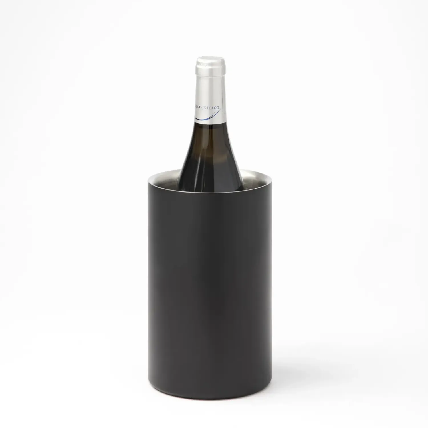 Den matte sorte overflade giver vinkøleren et diskret og moderne udtryk. Den cylindriske form er både praktisk og stilren, hvilket gør den velegnet til både hverdagsbrug og særlige lejligheder, hvor vinens temperatur skal holdes stabil.