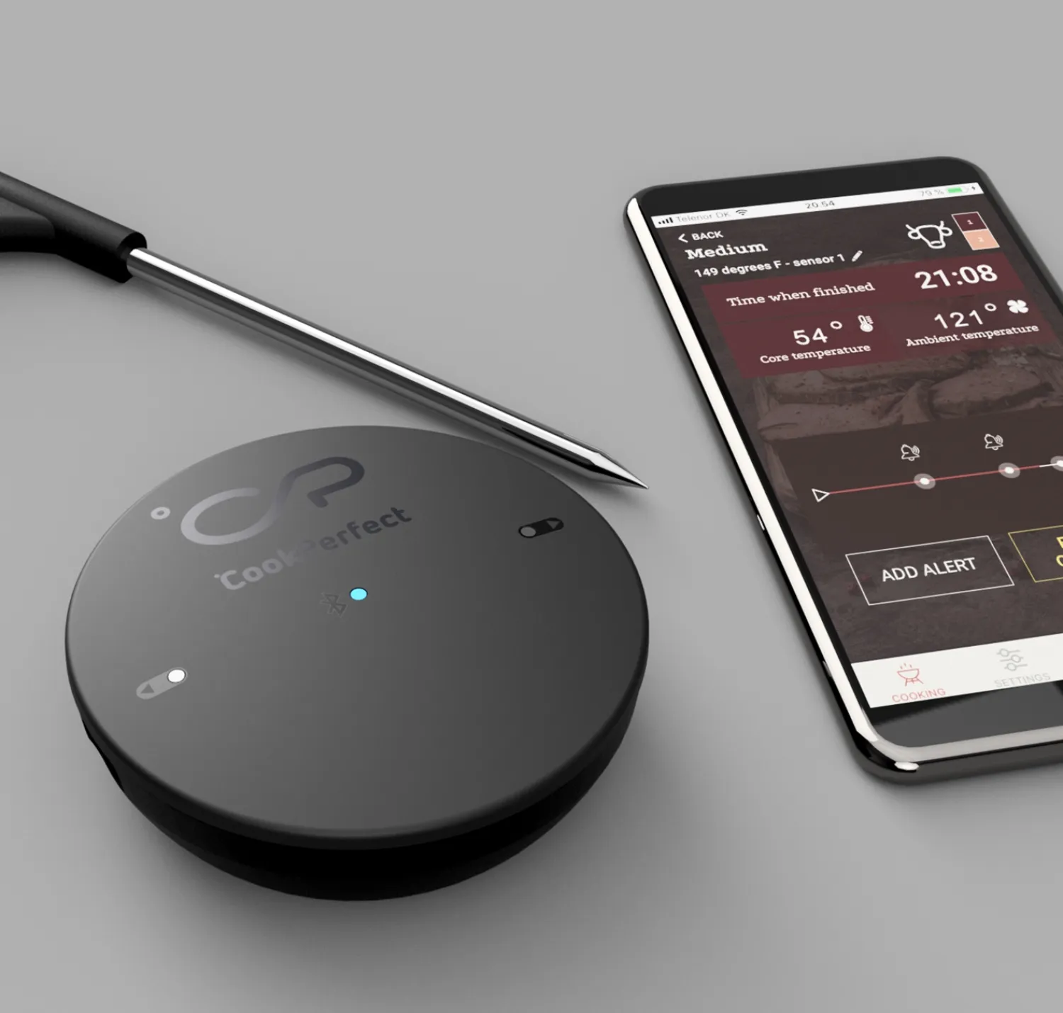 App-funktioner: Der er en tilhørende app, der kan forbinde sig trådløst til termometeret via Bluetooth. Appen kan give dig oplysninger om, hvornår din mad forventes at være færdig, hvilket kan være meget praktisk for tidsstyring under madlavningen.