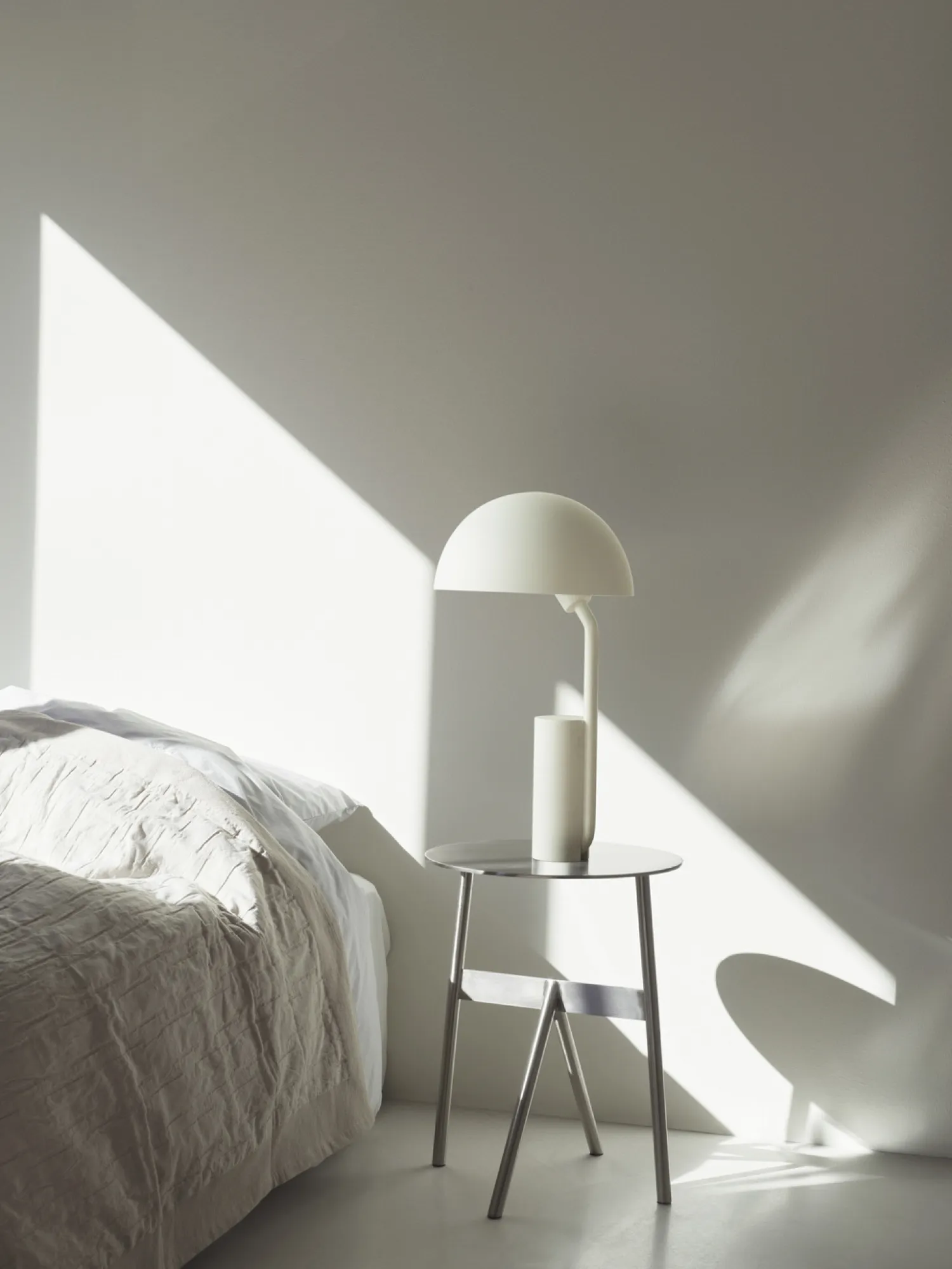 Dette sidebord fra Normann Copenhagen er fremstillet i stål og byder på en stabil konstruktion til daglig brug. Den runde bordplade hviler på et utraditionelt benarrangement, der tilfører et særligt udtryk til rummet.