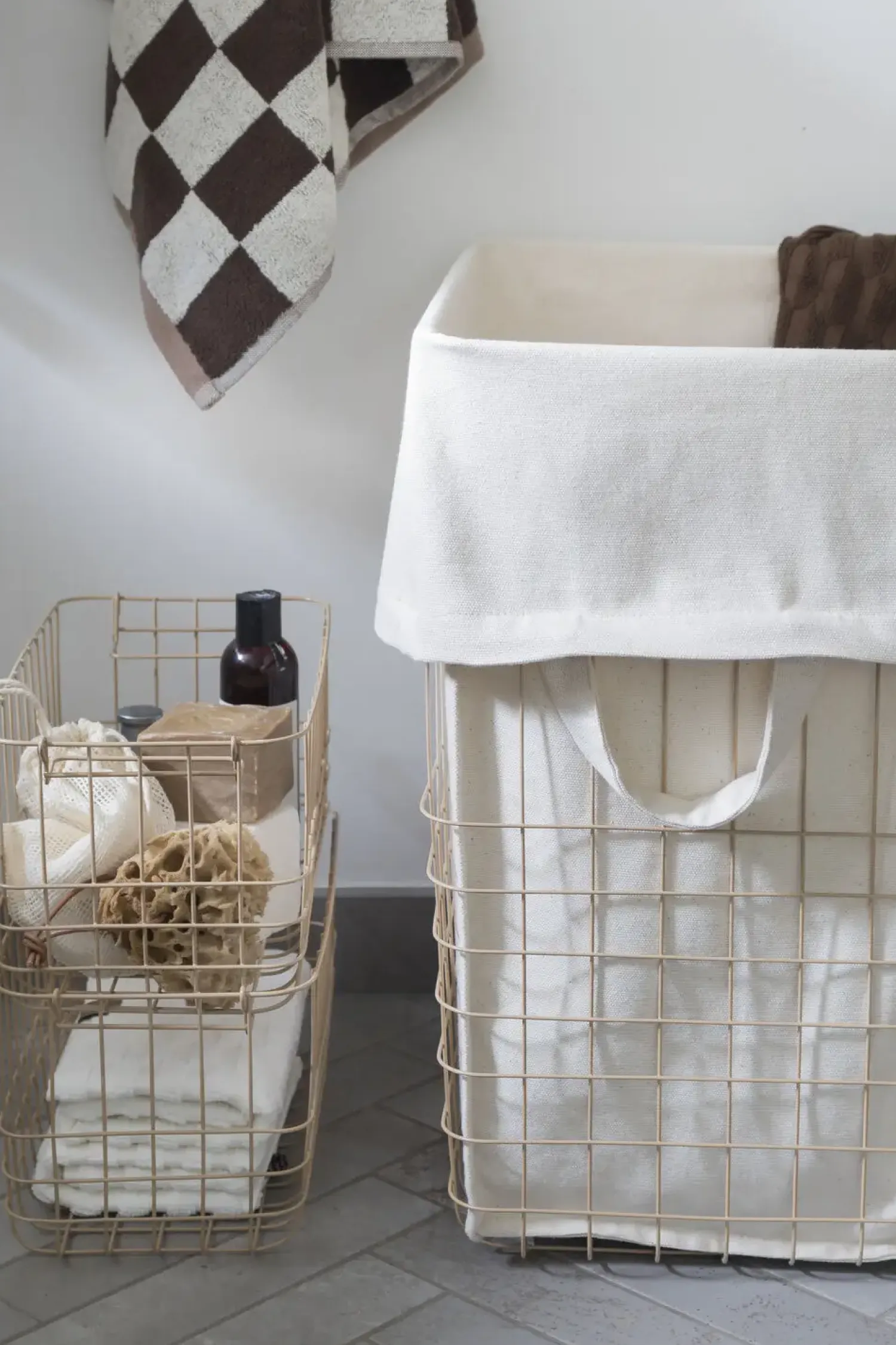 Den medfølgende bomuldspose er uundværlig, hvis kurven bruges som vasketøjskurv, og med to hanke kan den let tages ud af kurven og med på farten eller hentes til vaskemaskinen. Posen kan selvfølgelig vaskes efter behov. Kurven kan også bruges til opbevaring af legetøj på børneværelset eller til plaider og puder i stuen.