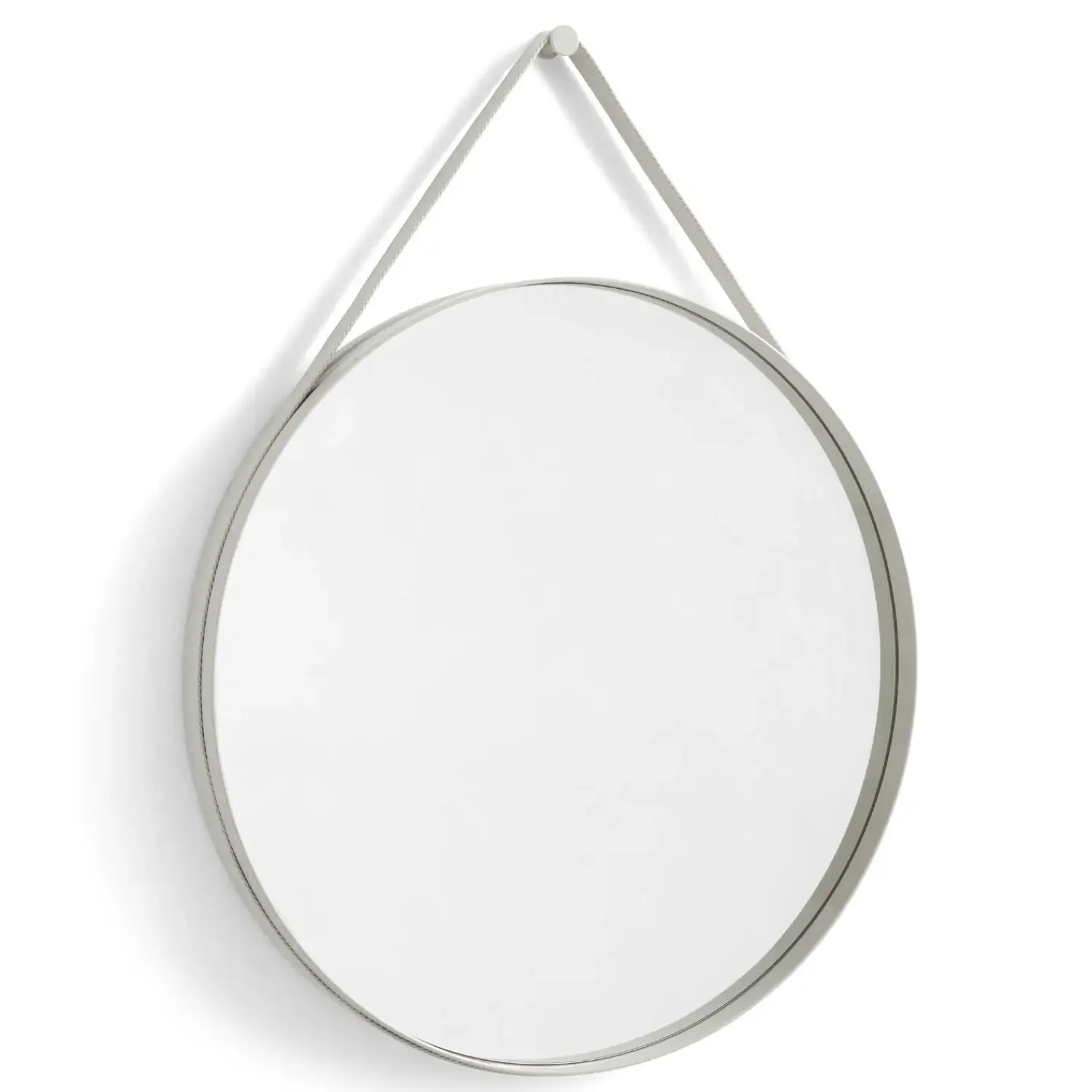 Dette runde spejl fra HAY kombinerer funktionalitet med et karakteristisk design. Med en diameter på 70 cm og en lys grå ramme af pulverlakeret stål giver spejlet dig både stil og anvendelighed i din daglige rutine.