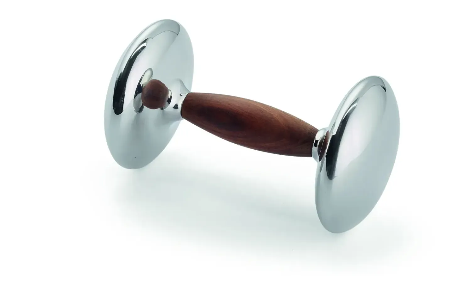 Håndvægten er fremstillet af håndpoleret rustfrit stål, som giver en skinnende overflade. Grebet er lavet af varmt sheeshamtræ, hvilket skaber en behagelig kontrast til stålet og bidrager til håndvægtens overordnede æstetik.