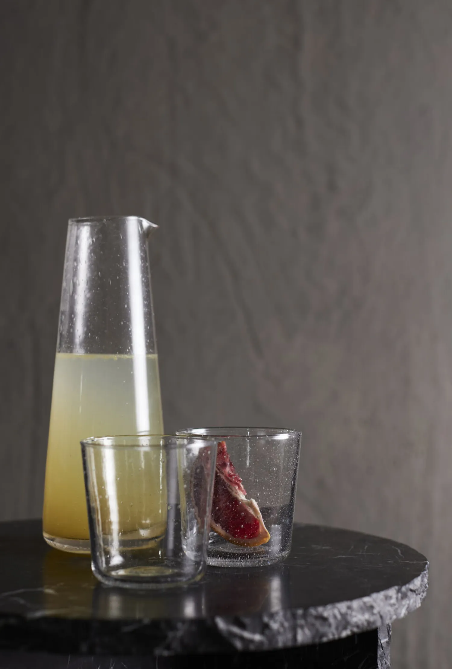 Det stilfulde Suiro glas er behagelig i hænderne og er designet til daglig brug med både funktionalitet og æstetik i fokus. Glassene er mundblæste og fremstillet af genbrugsglas, i et karakteristisk og robust design, der giver et løft til enhver borddækning. Suiro serien er opkaldt efter de finurlige bobler i glasset, der ligner små dråber af vand, skabt af små luftbobler mellem lagene i glasset, der gør hvert glas unik og sikrer, at ikke to glas er helt identiske. Glassene kan bruges med den tilhørende karaffel på ethvert stilfuldt middagsbord.Hvert enkelt glas i Suiro serien er unikt i forhold til tykkelse og højde, på grund af det genbrugte materiale og den mundblæste proces, og der vil være variationer i udtrykket på boblerne. Tåler opvaskemaskine.Glassene kan indeholde 250 ml.Design: Martina Claesson