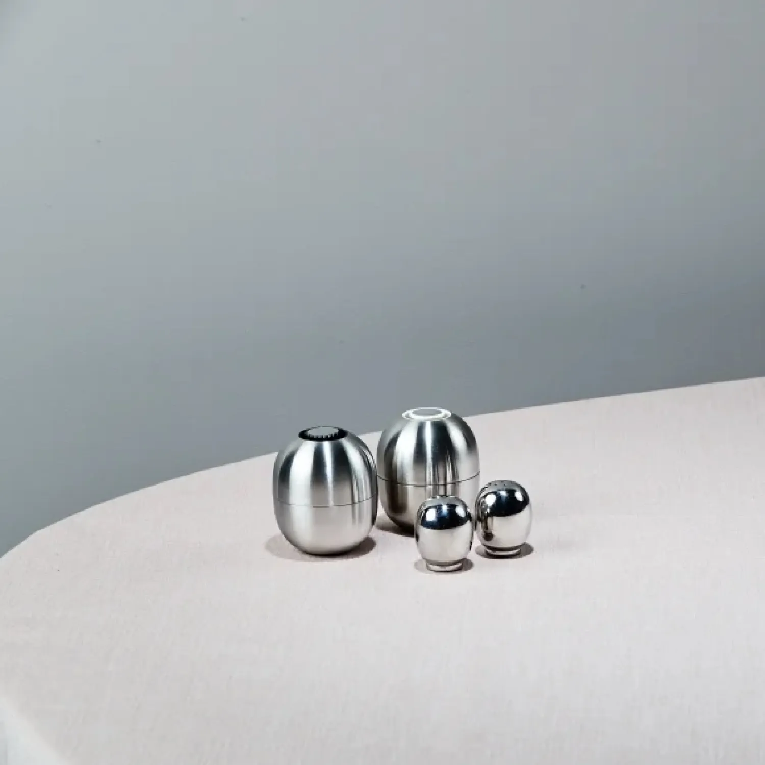Elegant Piet Hein peberbøsse i rustfrit stål formet efter Piet Hein’s velkendte og populære super-æg. Findes også som saltbøsse.