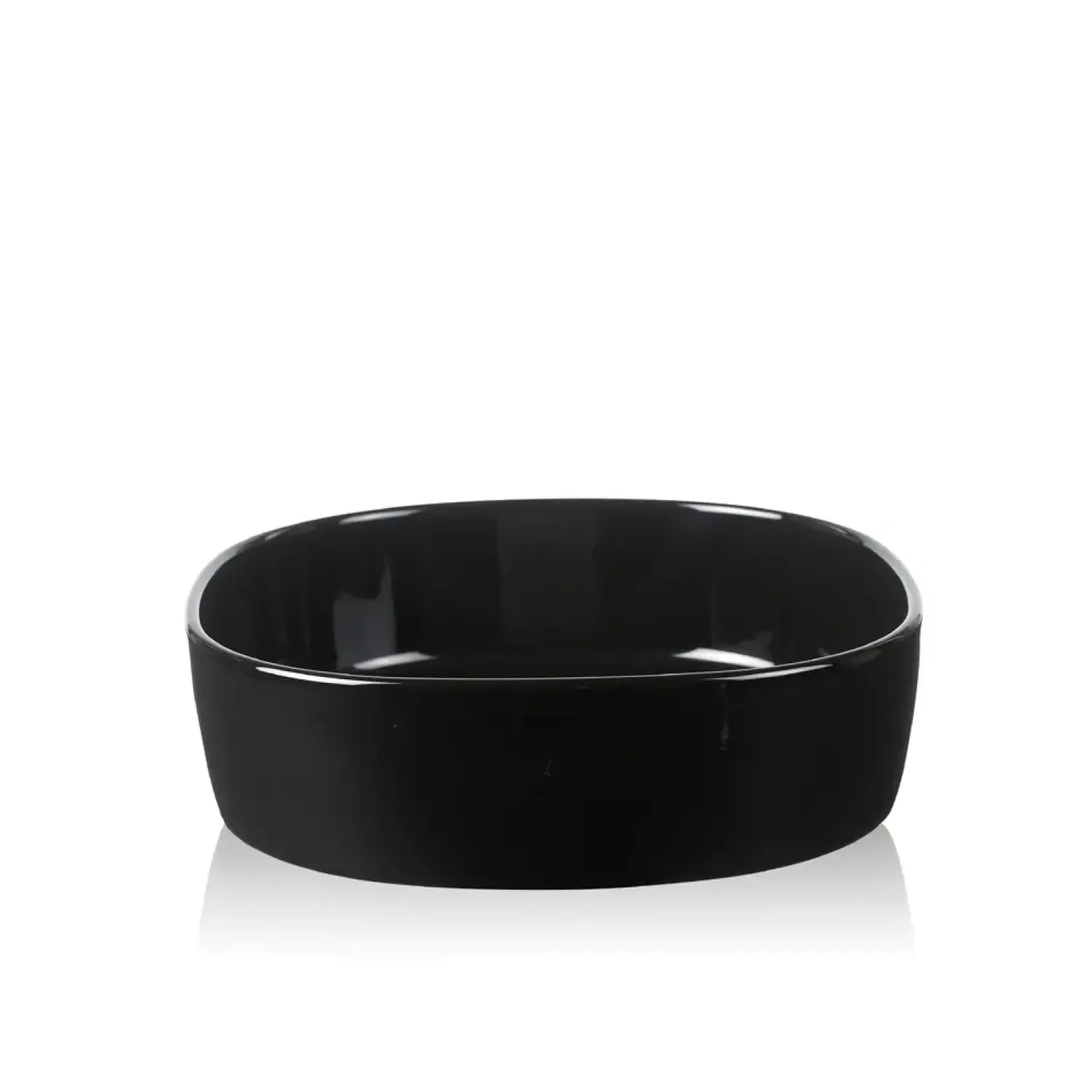 Supercirkulær ovnfast fad i sort porcelæn i et enkelt design fra Piet Hein. Fadet måler 26*26 cm og er derfor lidt anderledes i formen end Piet Heins andre superellipse fade. Fås også i hvid.