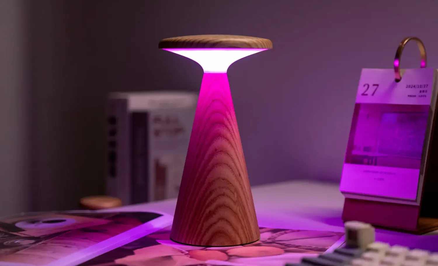 Denne kompakte bordlampe kombinerer hvid ask og akryl i en konisk form, der udsender lys fra toppen. Med Smart Touch-funktion kan du nemt justere lysstyrken med et enkelt berøring. Lyskilden er en 1,6 W LED, der giver både varmt lys og RGB-farver, så du kan tilpasse belysningen til din stemning.