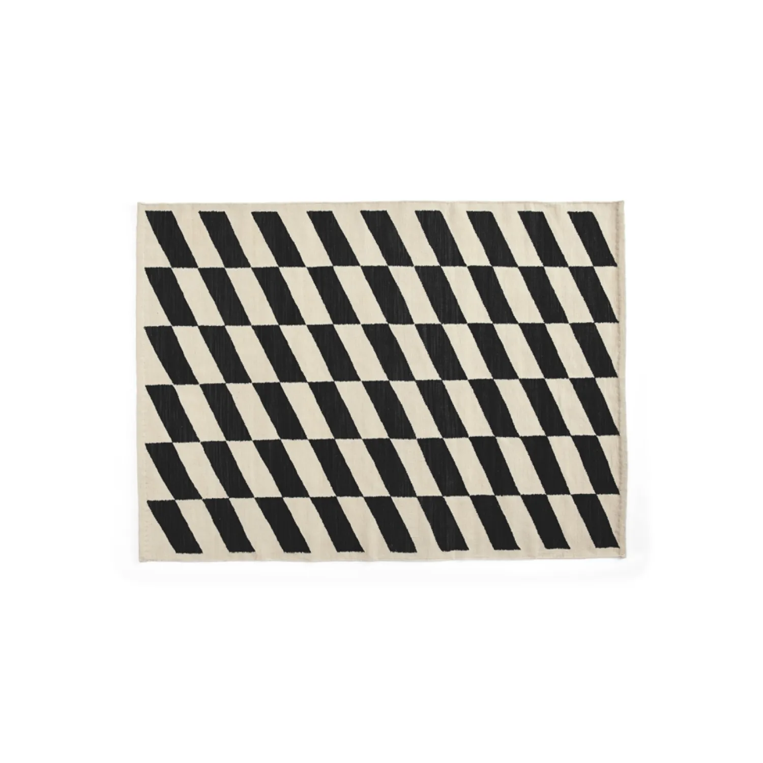 Dette håndlavede tæppe fra Hay er fremstillet af 100 % uld med håndspundet garn. Det diagonale stribemønster i sort og beige tilføjer variation til dit rum.