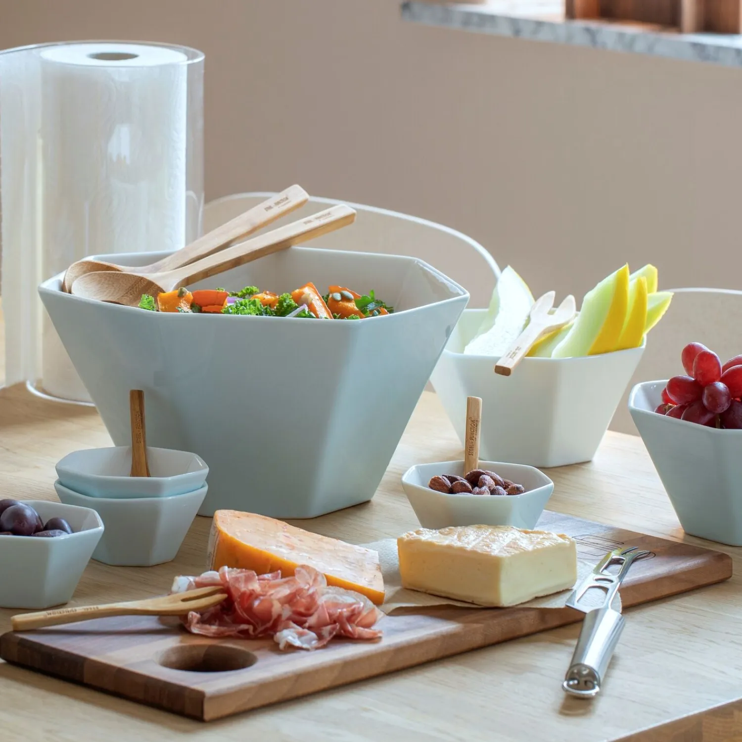 Den generøse længde på 45 cm giver dig frihed til at anrette forskellige kombinationer af tapas, mens den praktiske bredde på 16 cm sikrer, at brættet ikke optager unødig plads på bordet. Det smarte håndtag letter serveringen.