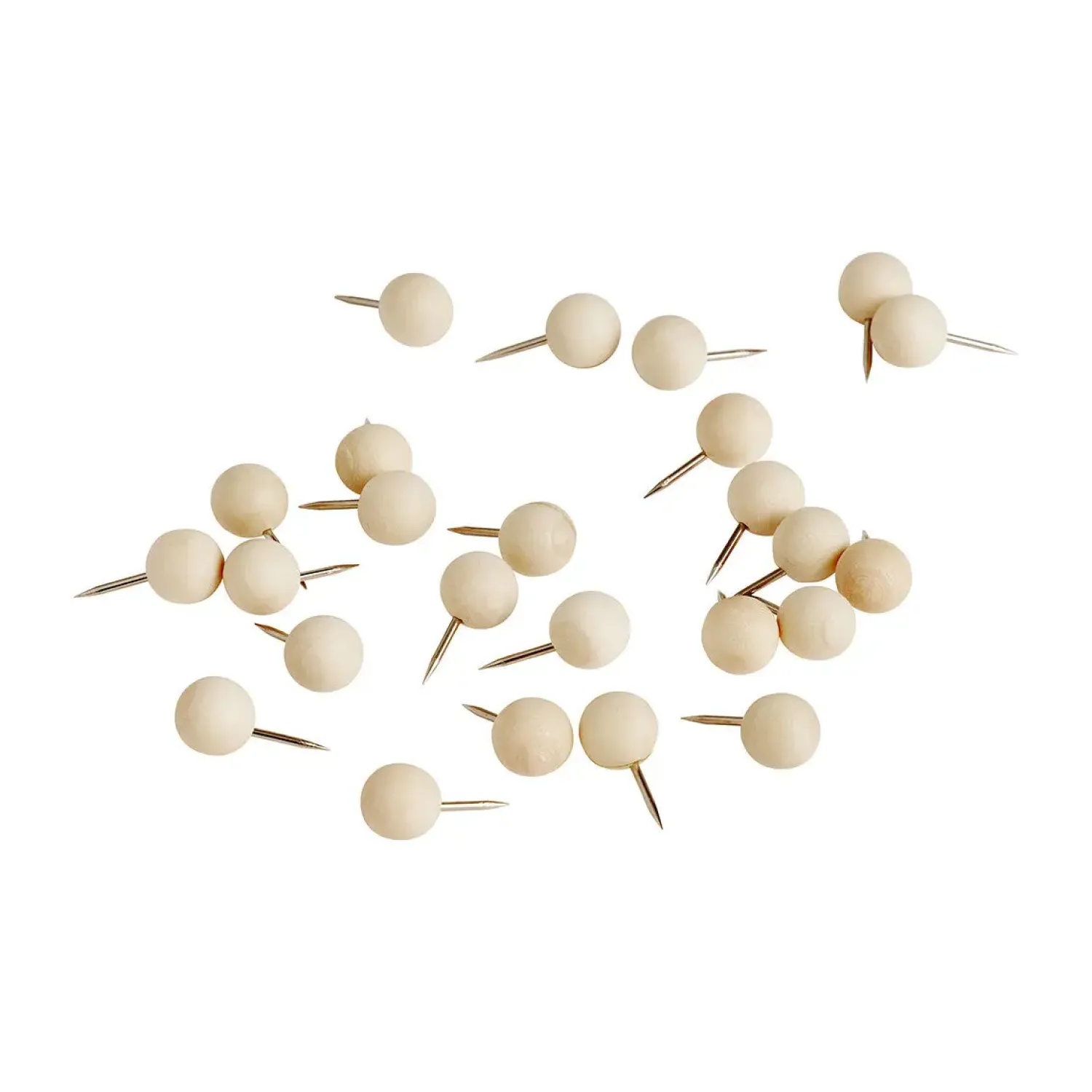 Vores tegnestifter i træ er perfekte til vores opslagstavler. Brug dem til at hænge netop dét, der inspirer dig op og lad din kreativitet starte. Sælges i en pakke med 25 pins.