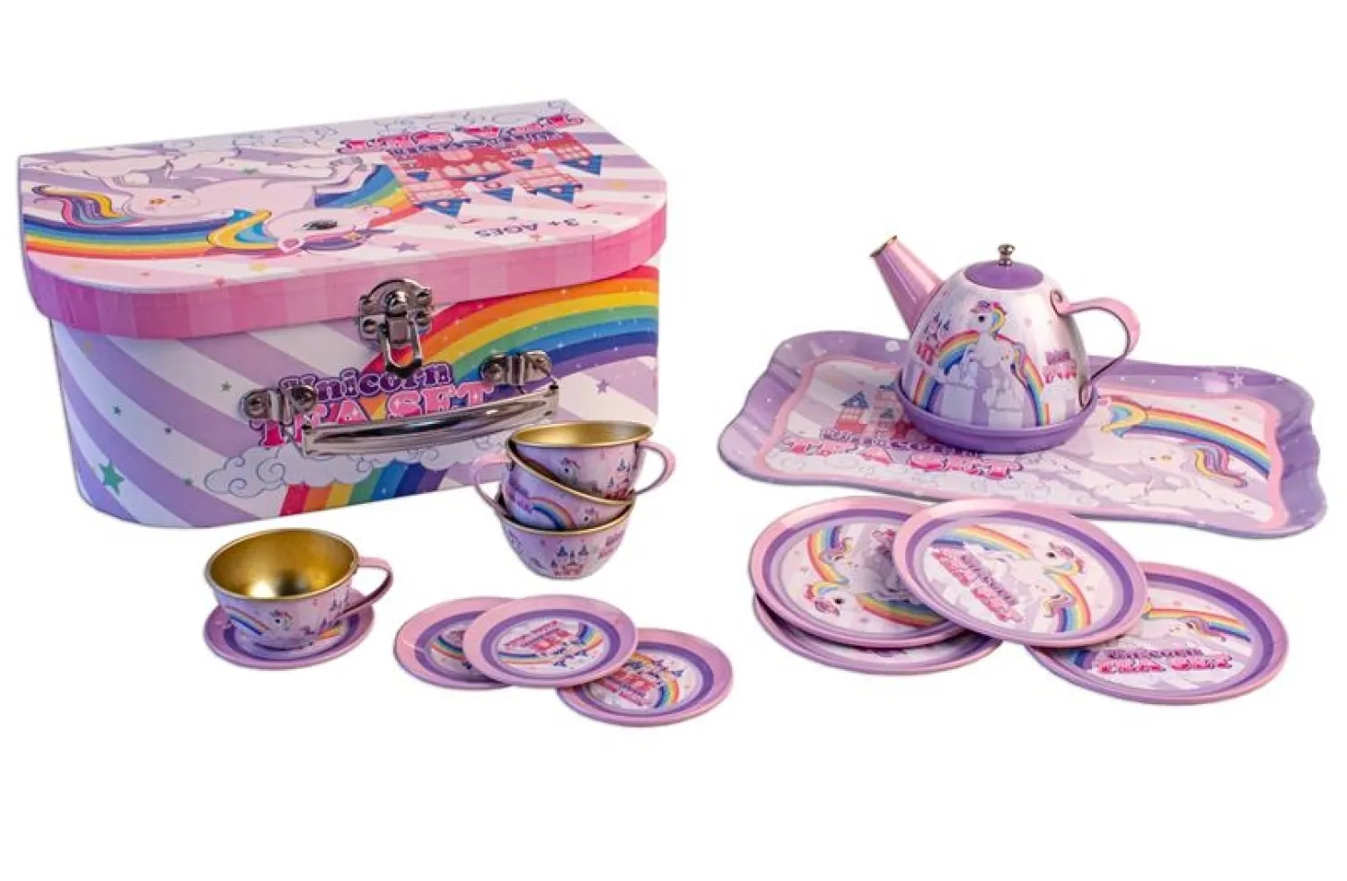Tesættet åbner døren til en fortryllende verden af leg. Med sin tinkonstruktion og farverige design er sættet klar til utallige eventyr. Den kompakte kuffert på 29 x 20 x 9 cm gør det nemt at tage hele teselskabet med på picnic eller besøg, hvilket understreger sættets portabilitet.