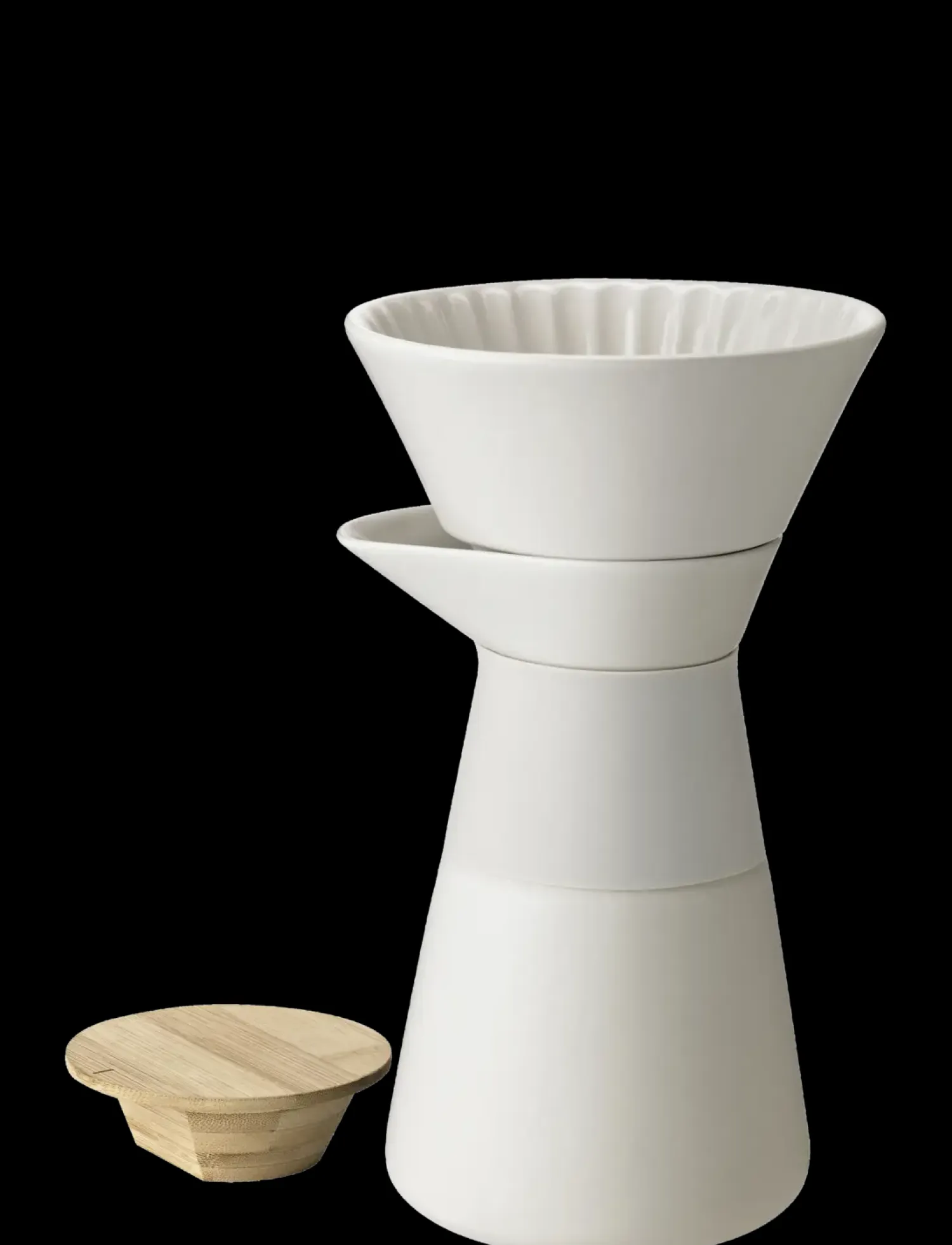 Tag dig tid og nyd en slow brew kaffe. Francis Cayouette har designet Theo slow brew kanden i det samme enkle, stilrene og skandinaviske formsprog som Theo tekanden og stempelkanden; råt, sortbrunt stentøj, der er mat udvendigt og glaseret indvendigt. Låg og andre detaljer er i lys bambus. Theo slow brew kaffebryggeren er både rustik og elegant. Kanden er udstyret med et bånd af varmeisolerende silikone, der giver et godt greb, så man undgår at brænde fingrene. Filterholderen har tre huller i bunden så gennemløbstiden forlænges naturligt. Kaffebryggeren rummer 0,6 liter og er perfekt til 1-2 personer.