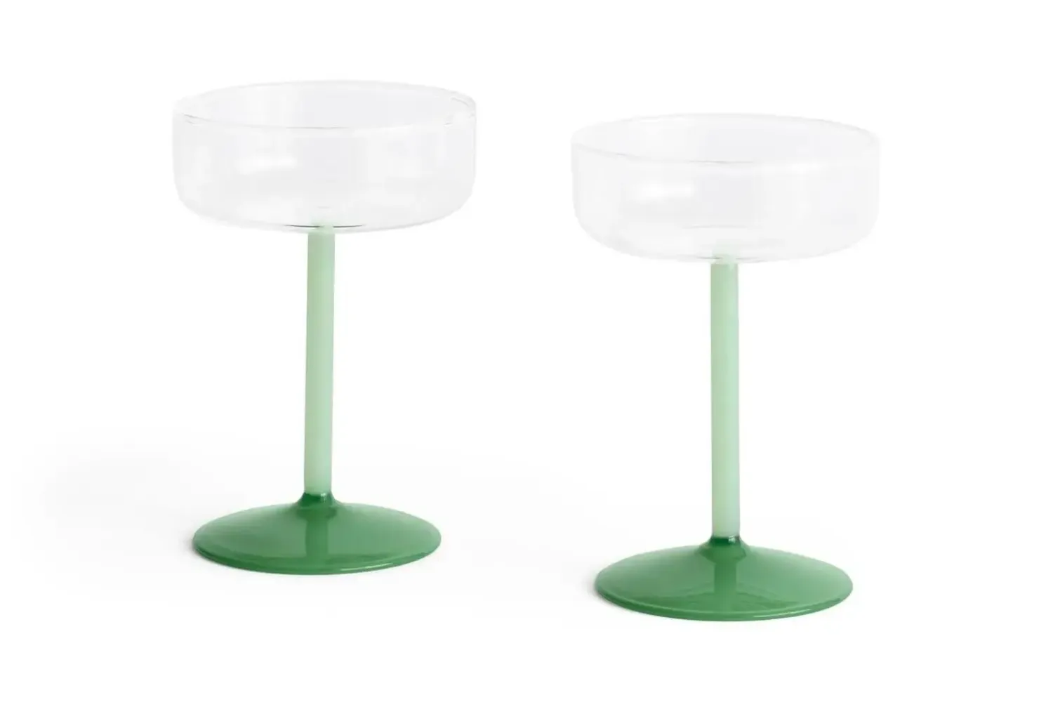 Borosilikatglas med klar skål og jadegrøn stilk giver disse glas deres særlige udtryk. Vælg mellem lys eller mørk jadegrøn base. Glassene tåler både varme og kolde drikke takket være det robuste materiale.