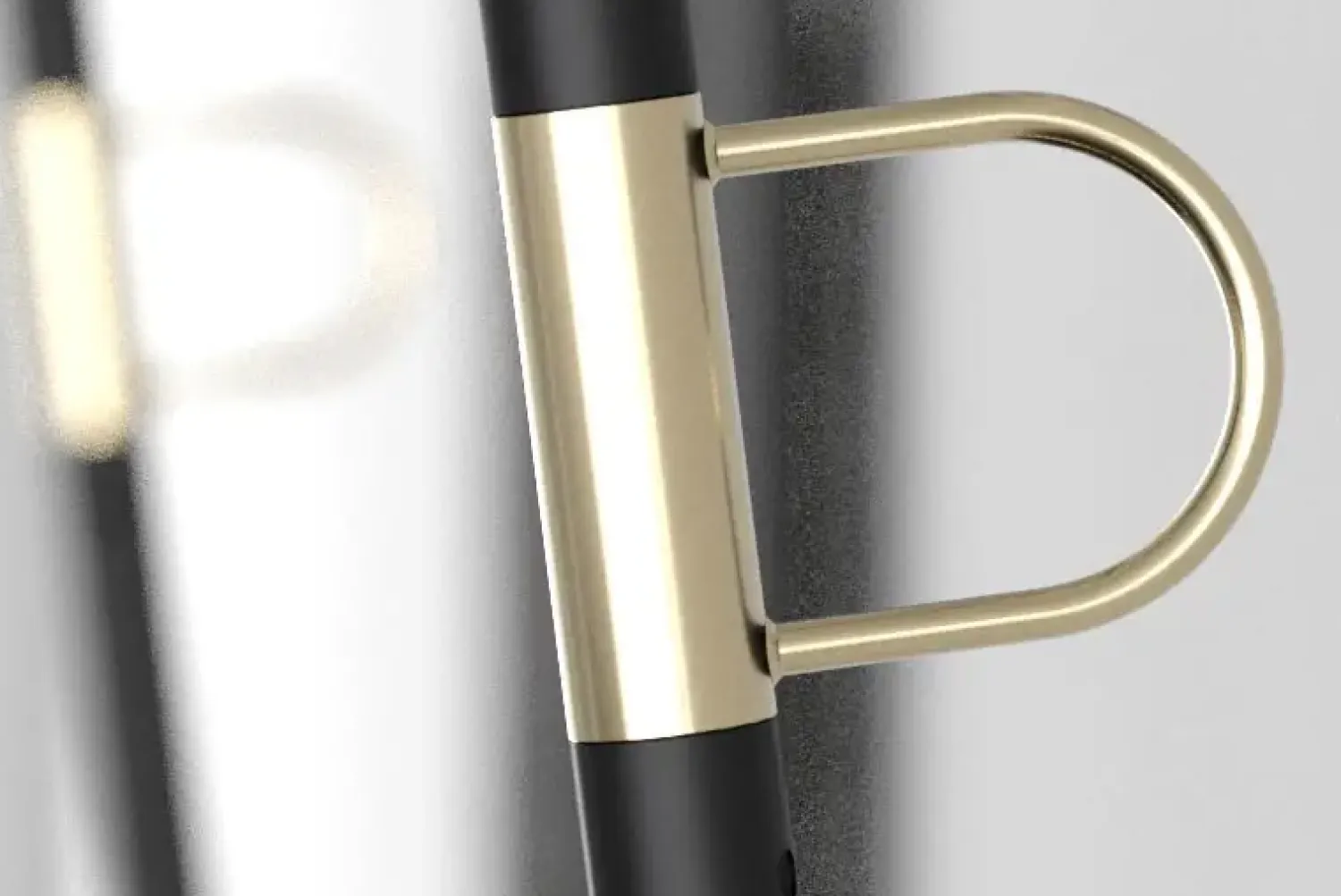 Materiale: Stål (pulverlakeret/forgyldt messing), kunstlæder (dark brown)