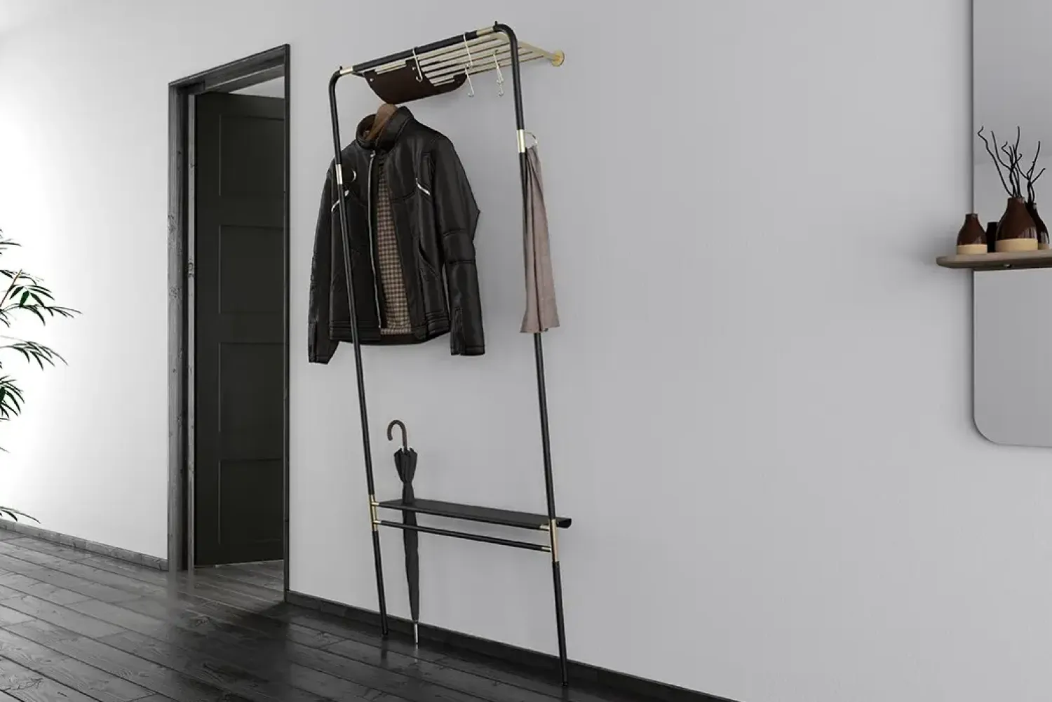 Tøjstativet Lean on me fra Umage giver plads til at opbevare alt dit overtøj, uden at bruge særlig meget plads. Lean On Me er designet til at læne i en vinkel fra væggen og tager derfor næsten ingen plads på gulvet.