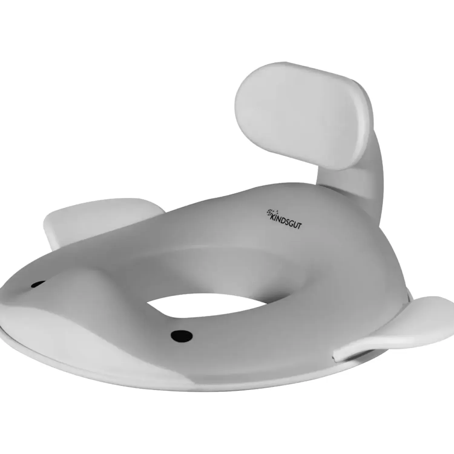 Hvaldesignet i mørkegrå farve kan gøre toiletbesøget mere tiltalende for dit barn. Ryglænet giver ekstra støtte, når dit barn sidder på toilettet. Den gummibelagte underside vejer 540 g i alt, hvilket giver tilstrækkelig vægt til at holde sædet stabilt uden at være for tungt at flytte rundt med.