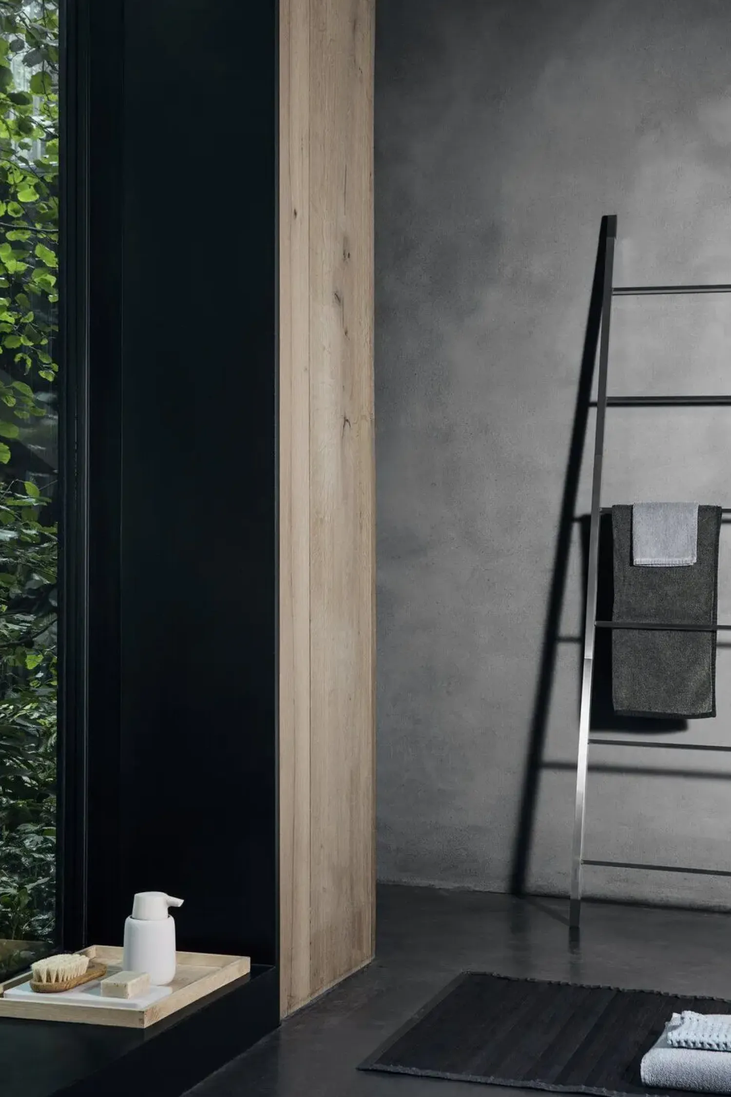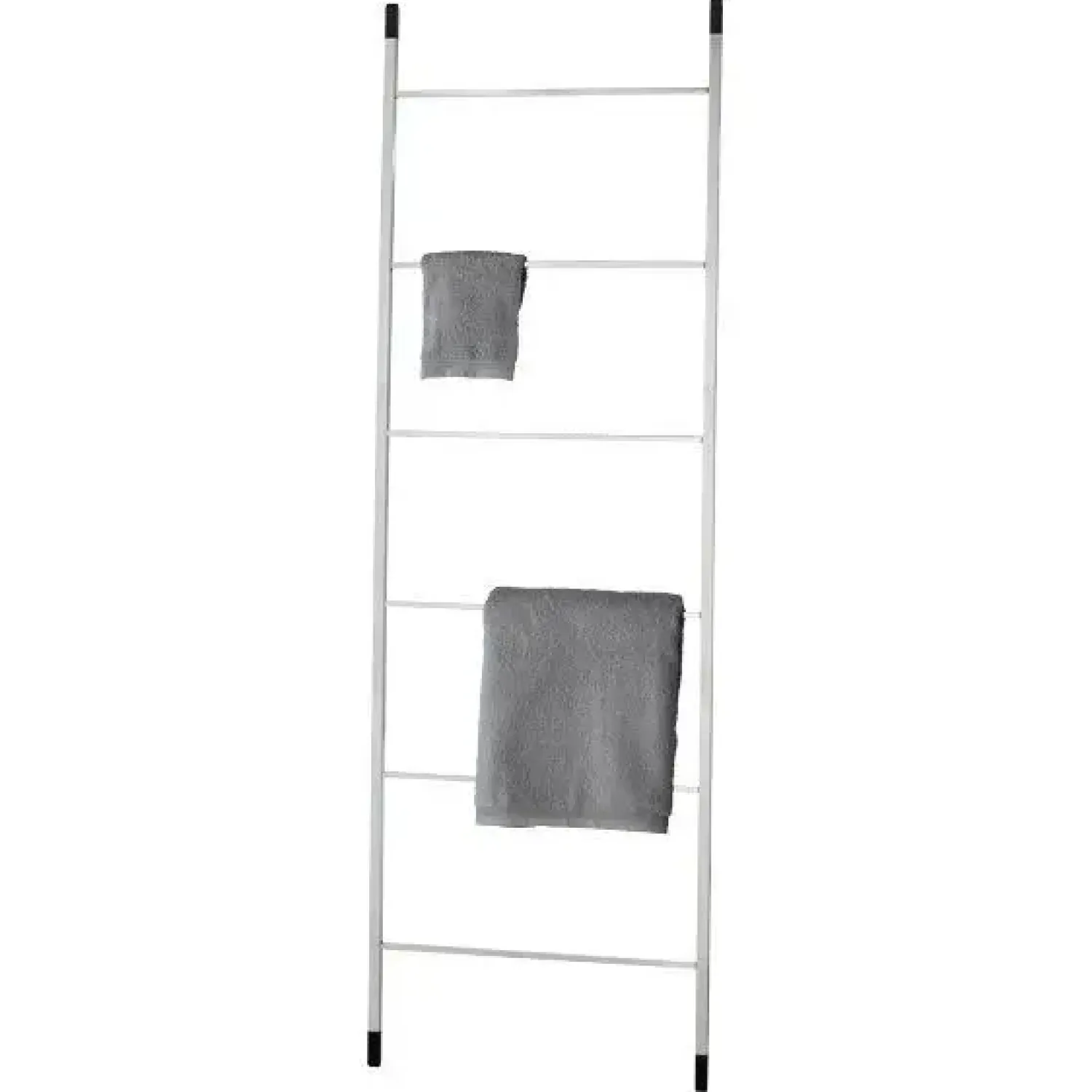 En måde at tørre dine håndklæder på uden at bruge en radiator! MENOTO mobile håndklædestige i mat rustfrit stål er stilfuld, anvendelig og pladsbesparende. Når den er lænet op ad en væg, giver den tørreplads til flere håndklæder. Skridsikker plastik ærmer i hver ende af stigen sikrer, at den bliver på plads. Også fantastisk til at hænge tøj eller jakker op i soveværelser eller entre.