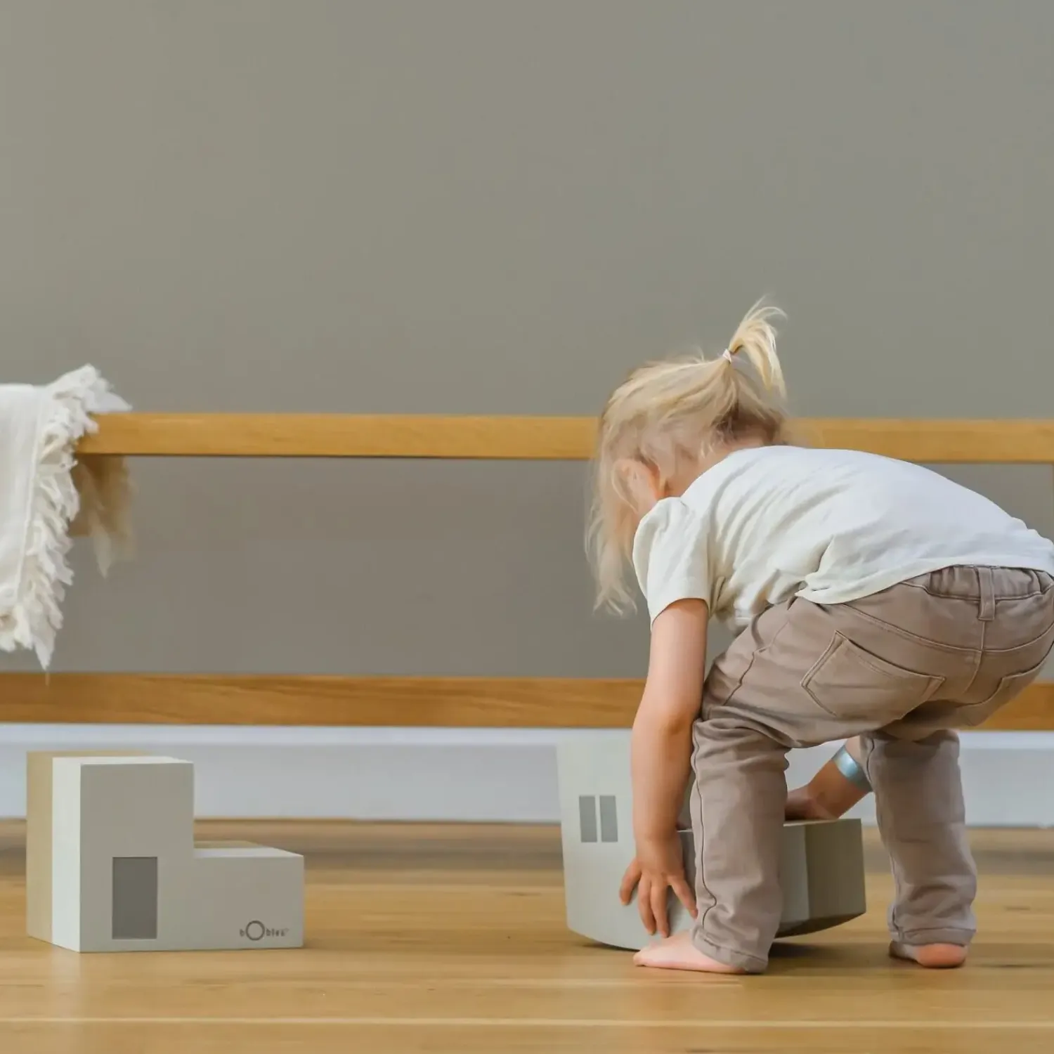 Hvis du leder efter legetøj, der ikke kun fylder, men faktisk bruges, er dette en løsning. De to dele kan stables, når de ikke er i brug, og den buede top gør det nemt at vippe frem og tilbage. Dit barn kan sidde på det som en skammel eller vende det for en anden legeoplevelse.