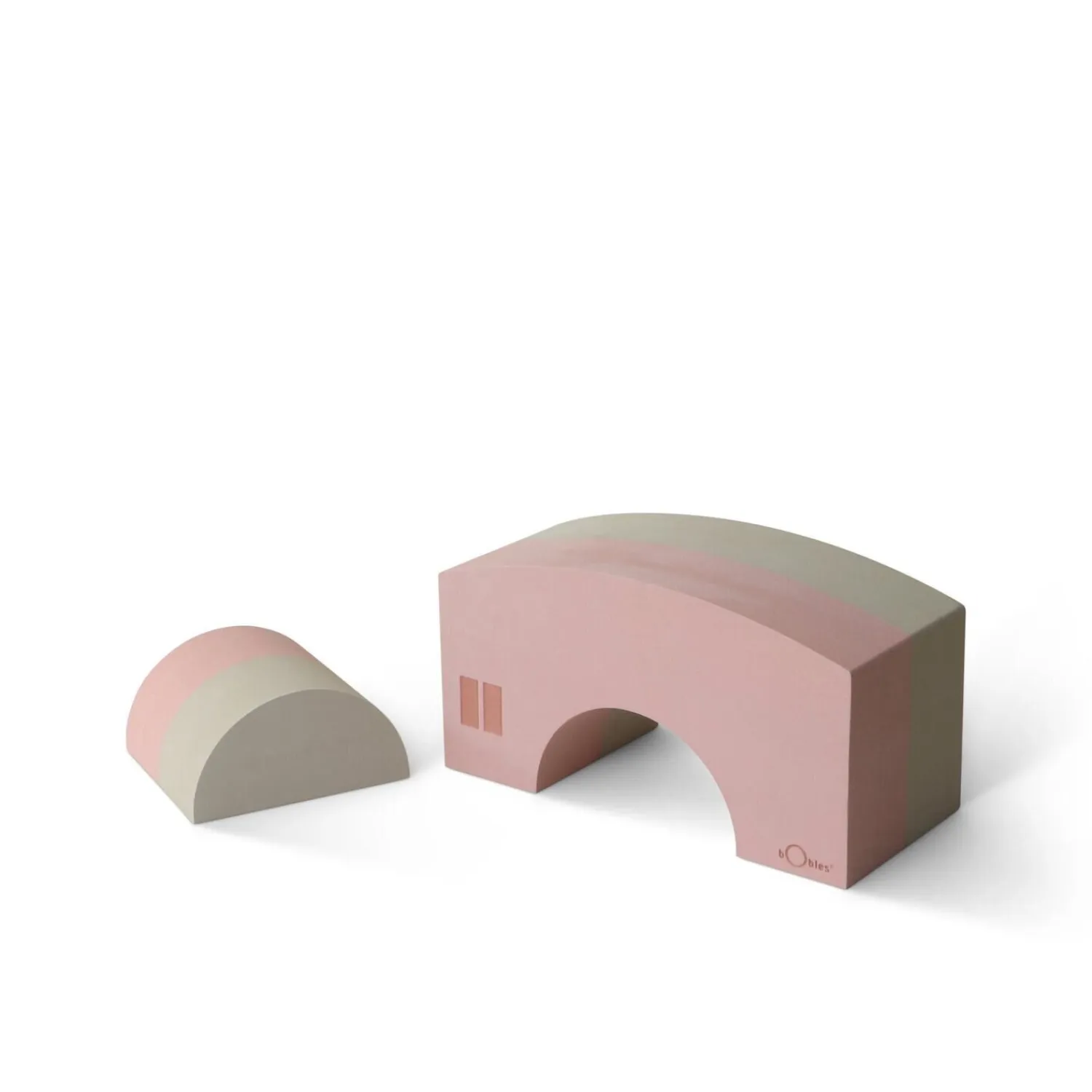 Dette todelte legesæt fra bObles stimulerer børns fantasi og motorik gennem aktiv leg. Den større bueformede del og den mindre halvcirkelformede del kan bruges på forskellige måder – som skammel, vippe, trædesten eller trappe. Det flerfarvede design i lyserøde og beige nuancer passer ind i dit hjem.