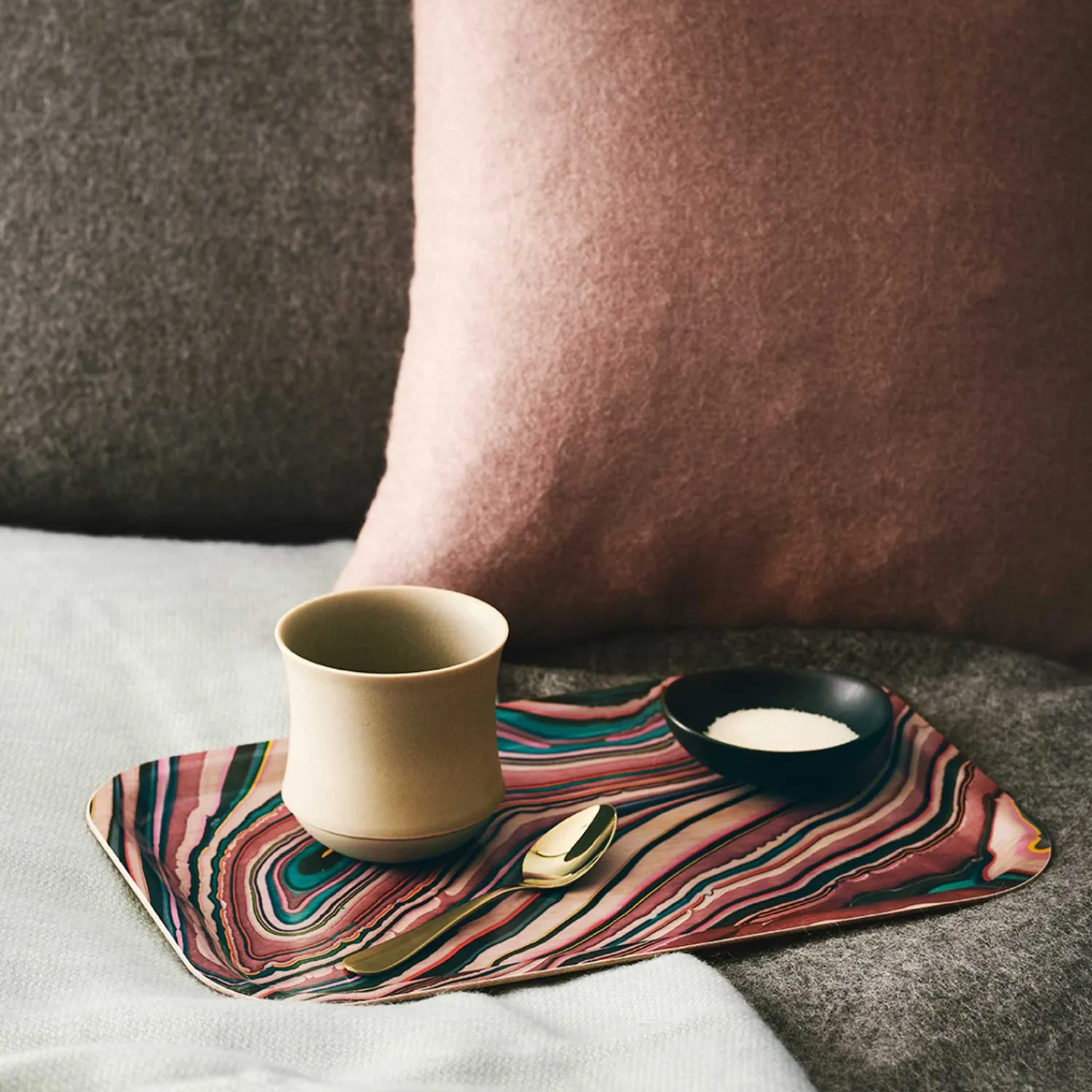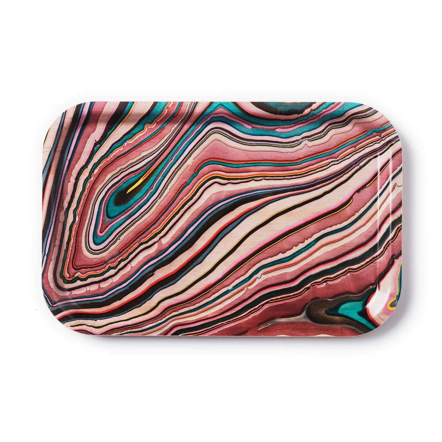 Det marmorerede mønster skaber et levende udtryk, der minder om træets naturlige årer. Hver bakke har sit eget unikke farvespil, der gør den til mere end bare et serveringsredskab; den bliver et samtaleemne på dit bord.