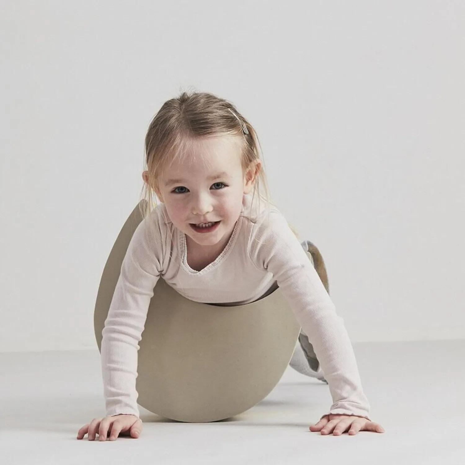 Når dit barn bruger tumleægget, træner det balance og koordination gennem leg. De to dele kan bruges hver for sig eller sammen, hvilket giver mulighed for forskellige aktiviteter, der matcher barnets udviklingsniveau. Den buede bund skaber bevægelse, når barnet sidder, står eller kravler på den.