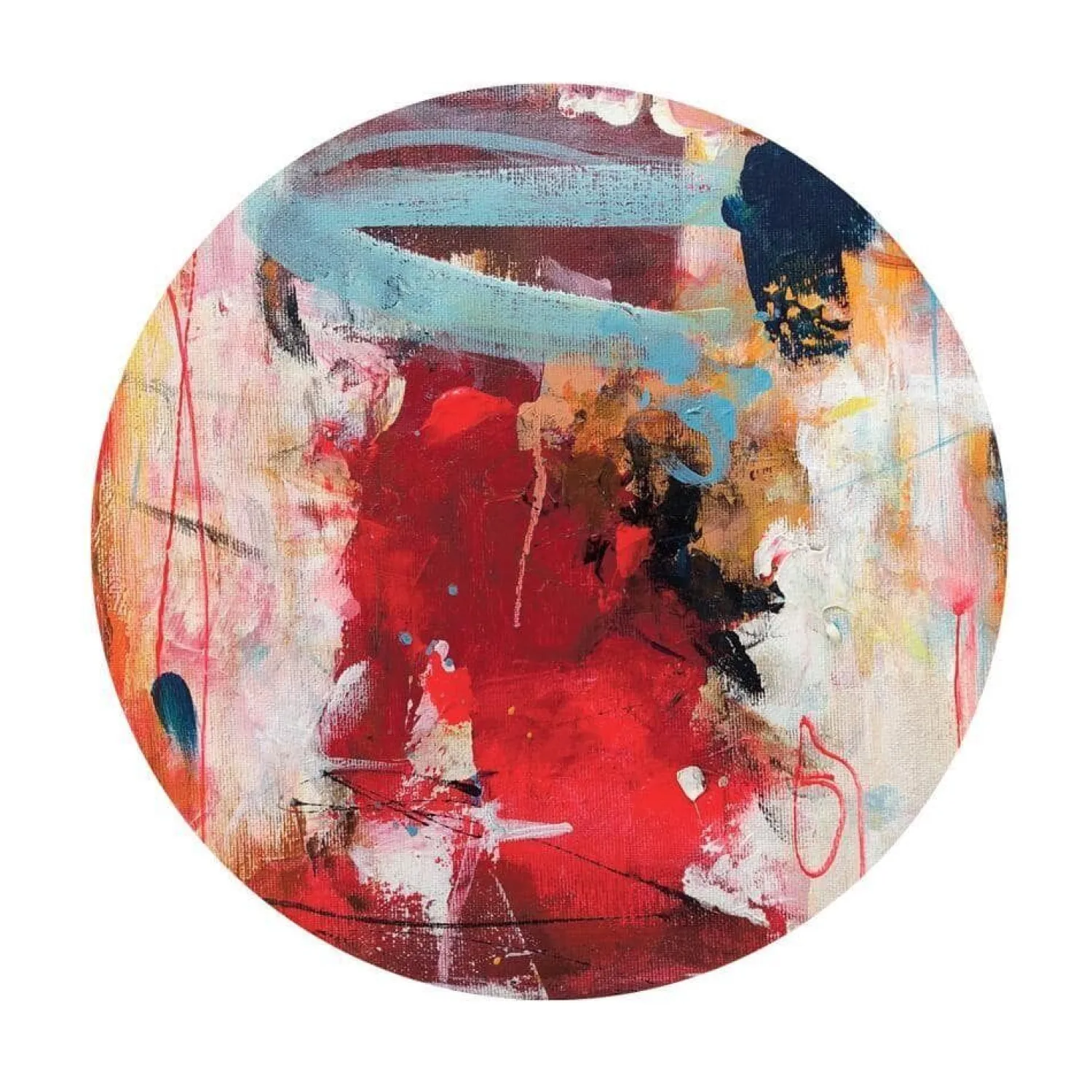 - Kunstnerisk mønster i røde, blå og gule nuancer