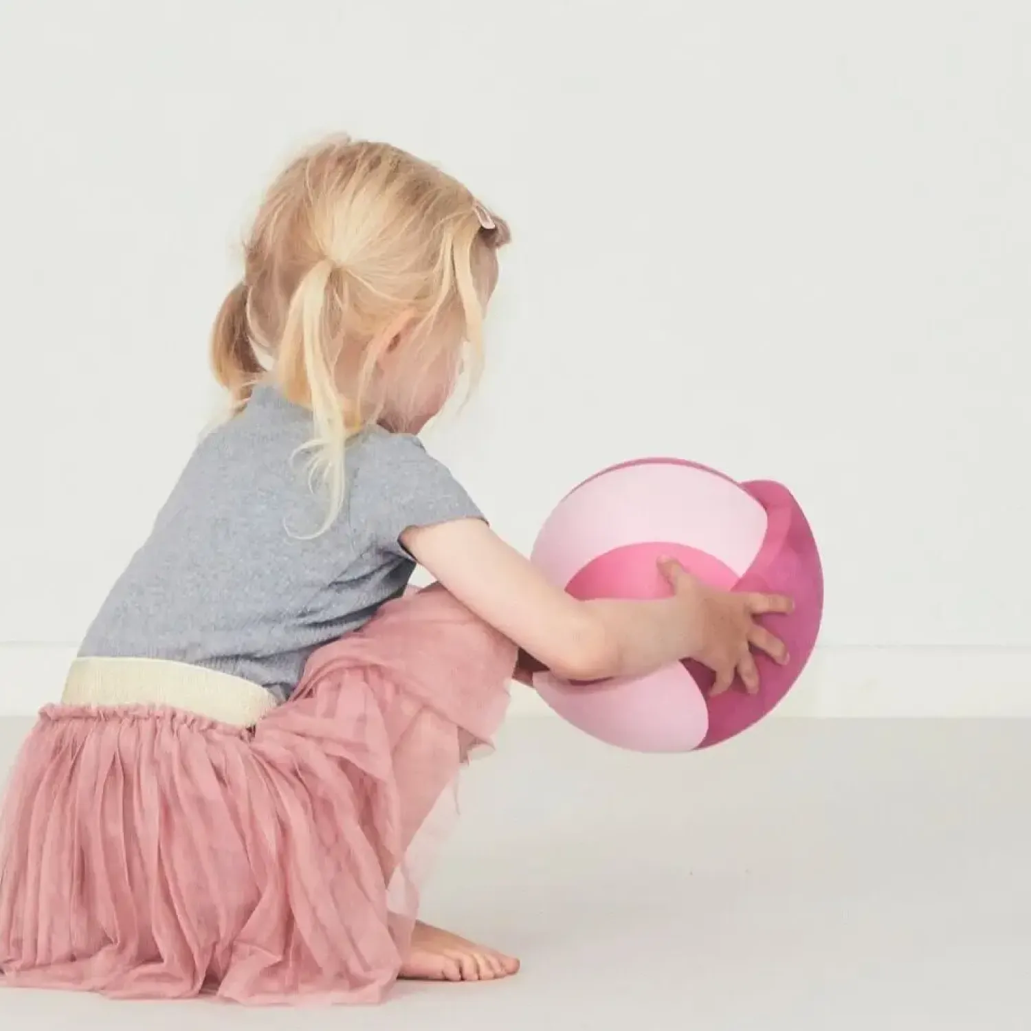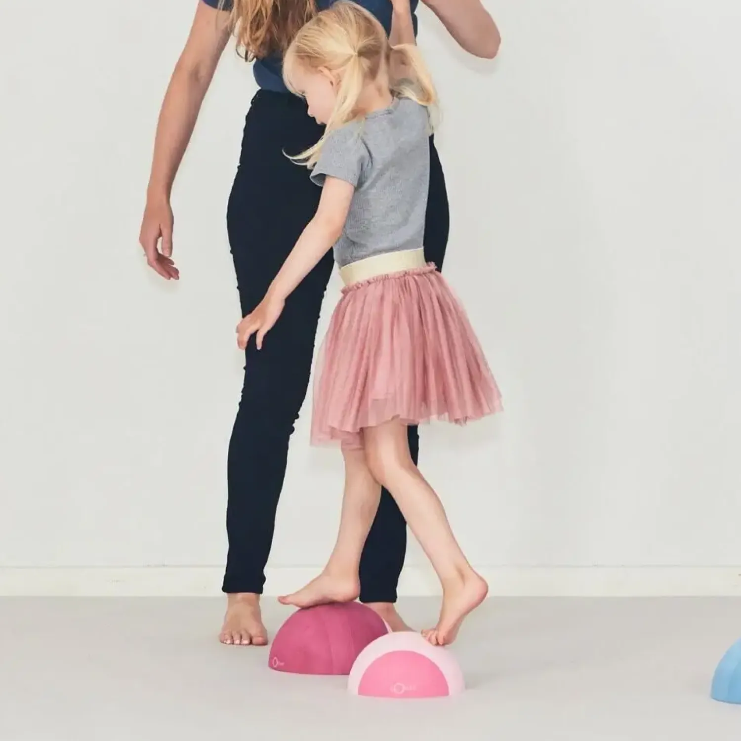 Brug tumlesten som stabil skammel, når dit barn skal nå højere, eller vend den til en bevægelig bue for balancetræning. Dit barn kan ligge på maven over rundingen for at styrke nakken, hvilket understøtter den fysiske udvikling. Den halvkugleformede konstruktion giver mulighed for kreativ leg, der integreres naturligt i daglige rutiner.