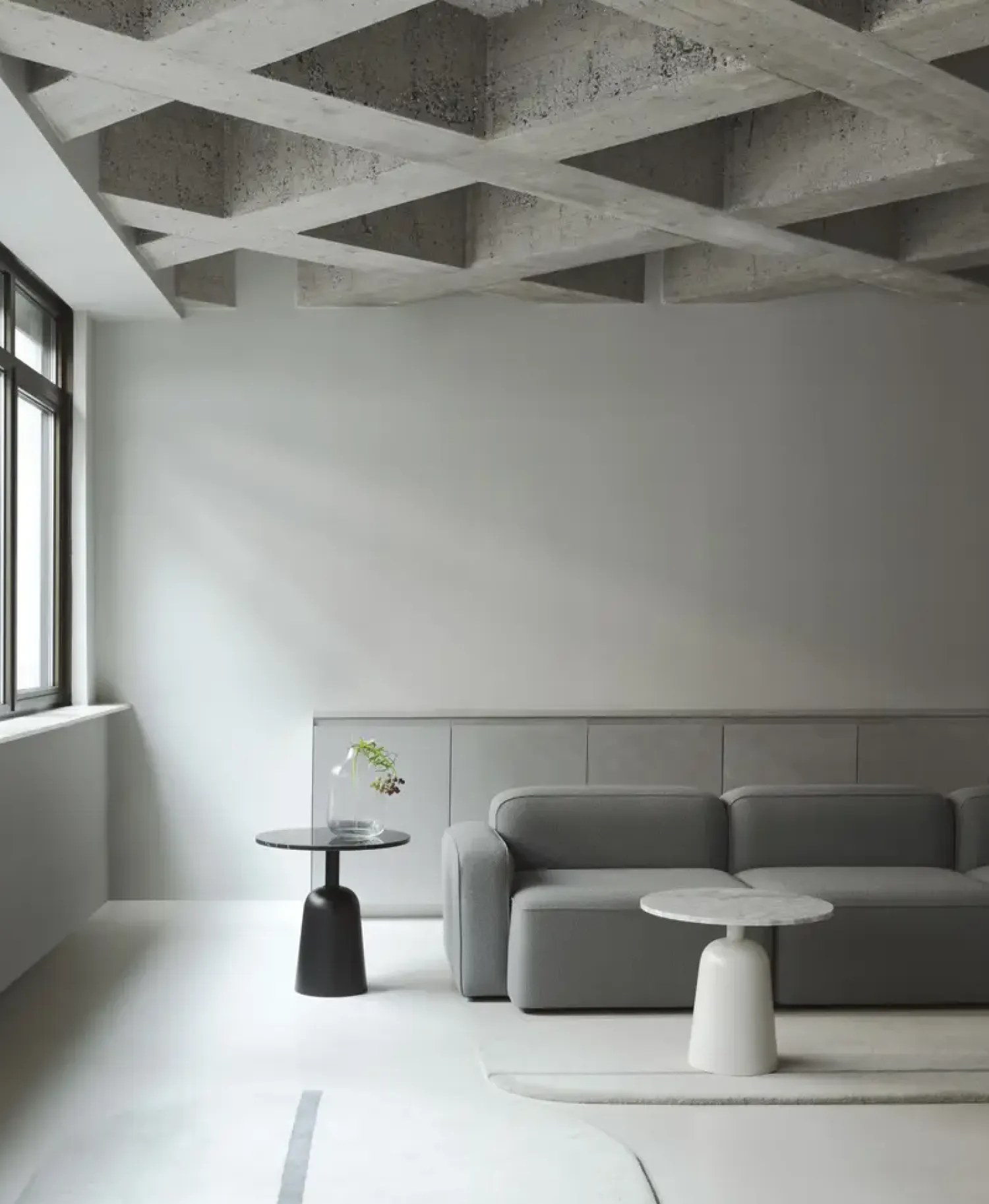 Du kan vælge mellem sort, mørkegrå eller lysere varm grå, så bordet matcher din eksisterende indretning. Den runde bordplade og den koniske base skaber et harmonisk udtryk, der passer ind i forskellige rumtyper.