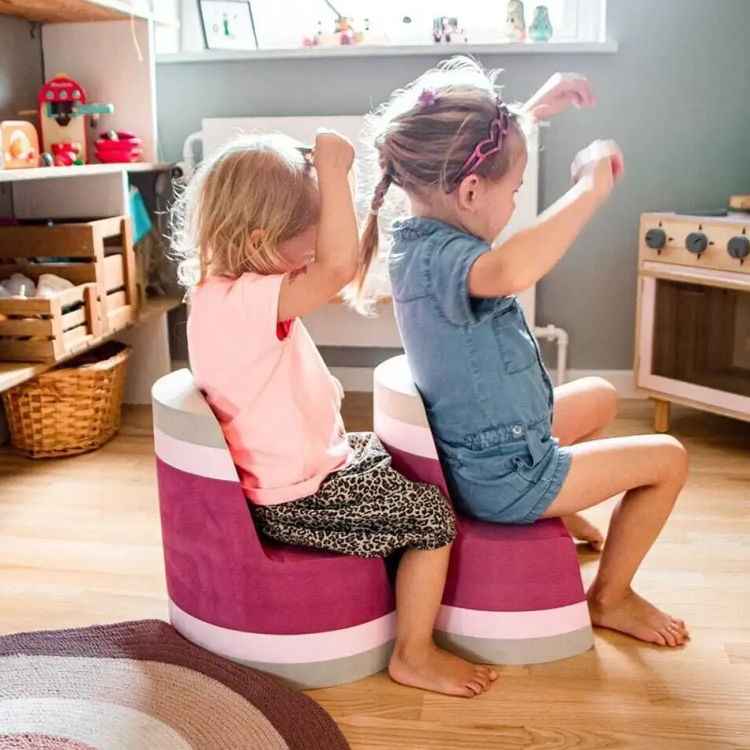 Det lette EVA-skum betyder, at barnet selv kan arrangere møblet, som det har lyst til. Dette fremmer selvstændighed og giver mulighed for kreativ leg. Twin Rose er en del af bObles’ cirkelserie, der kombinerer funktion med et design, som passer ind i hjemmet.