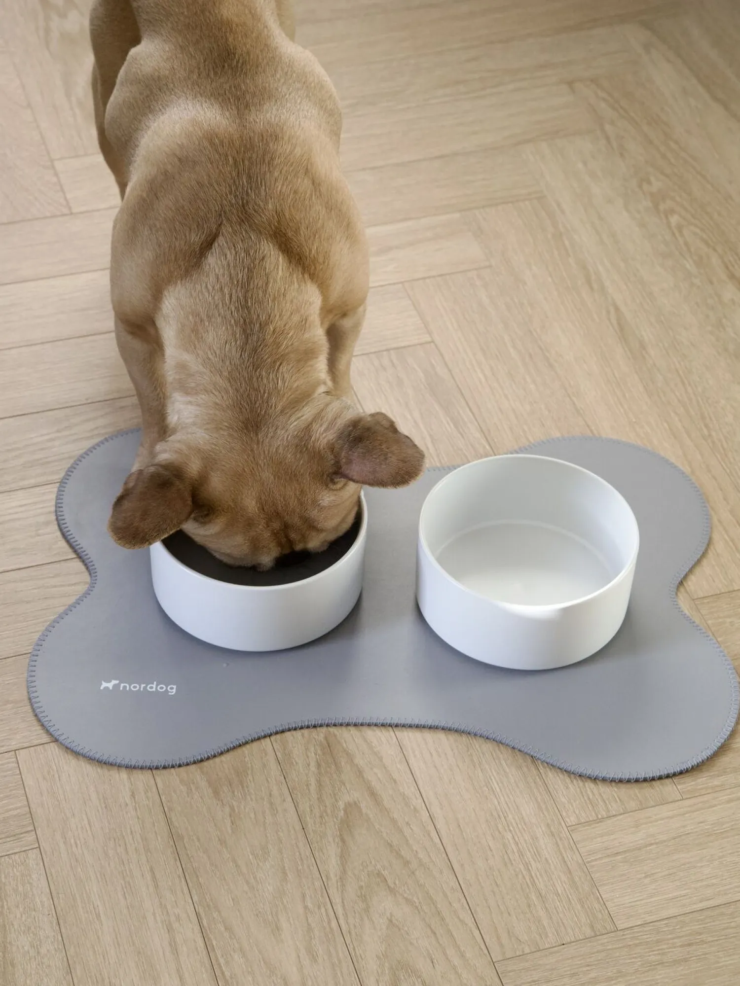 Underlaget fra Nordog er lavet i et vandtæt materiale og er formet som et hundekødben. Underlaget sørger for at beskytte dit gulv mod pletter samtidig med, at skålenes bund holder sig pæne. Du kan let rengøre underlaget med en fugtig klud.