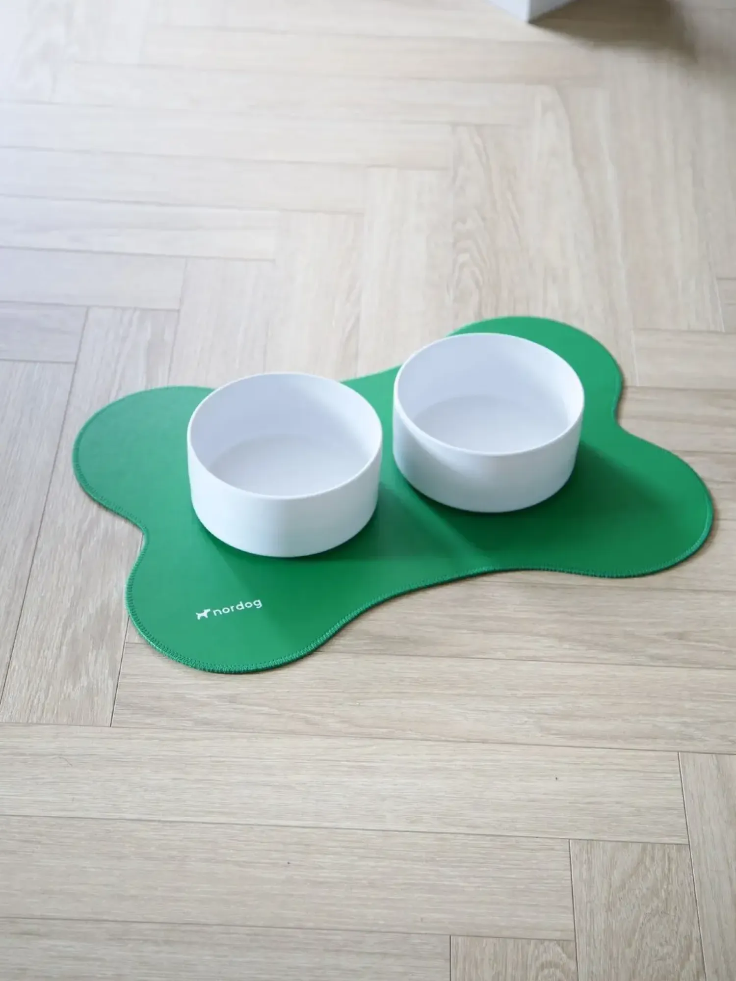 Underlaget fra Nordog er lavet i et vandtæt materiale og er formet som et hundekødben. Underlaget sørger for at beskytte dit gulv mod pletter samtidig med, at skålenes bund holder sig pæne. Du kan let rengøre underlaget med en fugtig klud.