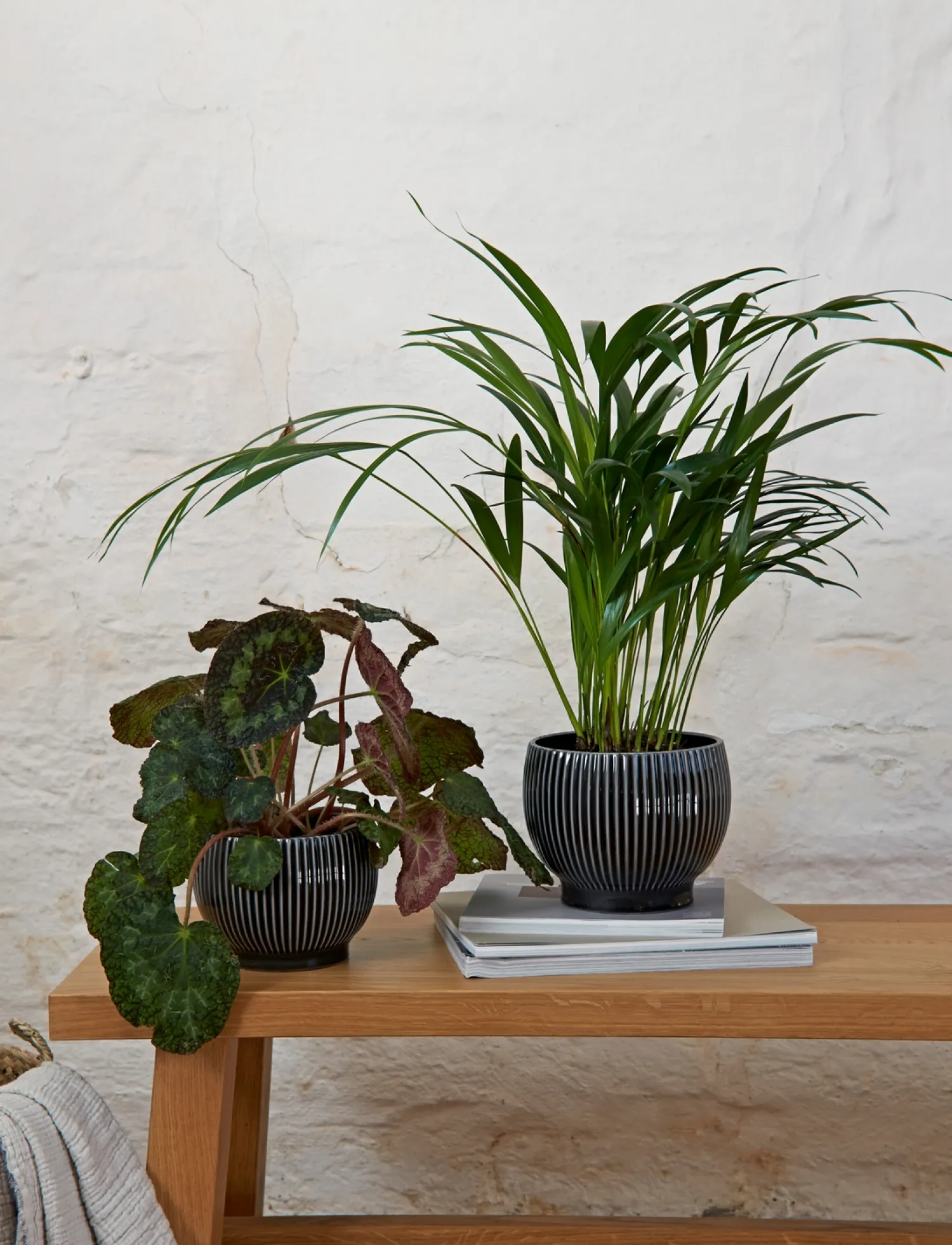 Denne urtepotteskjuler fra Knabstrup Keramik forener elegant formgivning med nutidig æstetik. Den ribbede tekstur og den blanke sorte finish skaber en interessant kontrast, der tilfører dybde og karakter til enhver planteopstilling. Den runde form komplementerer naturligt planternes organiske linjer.